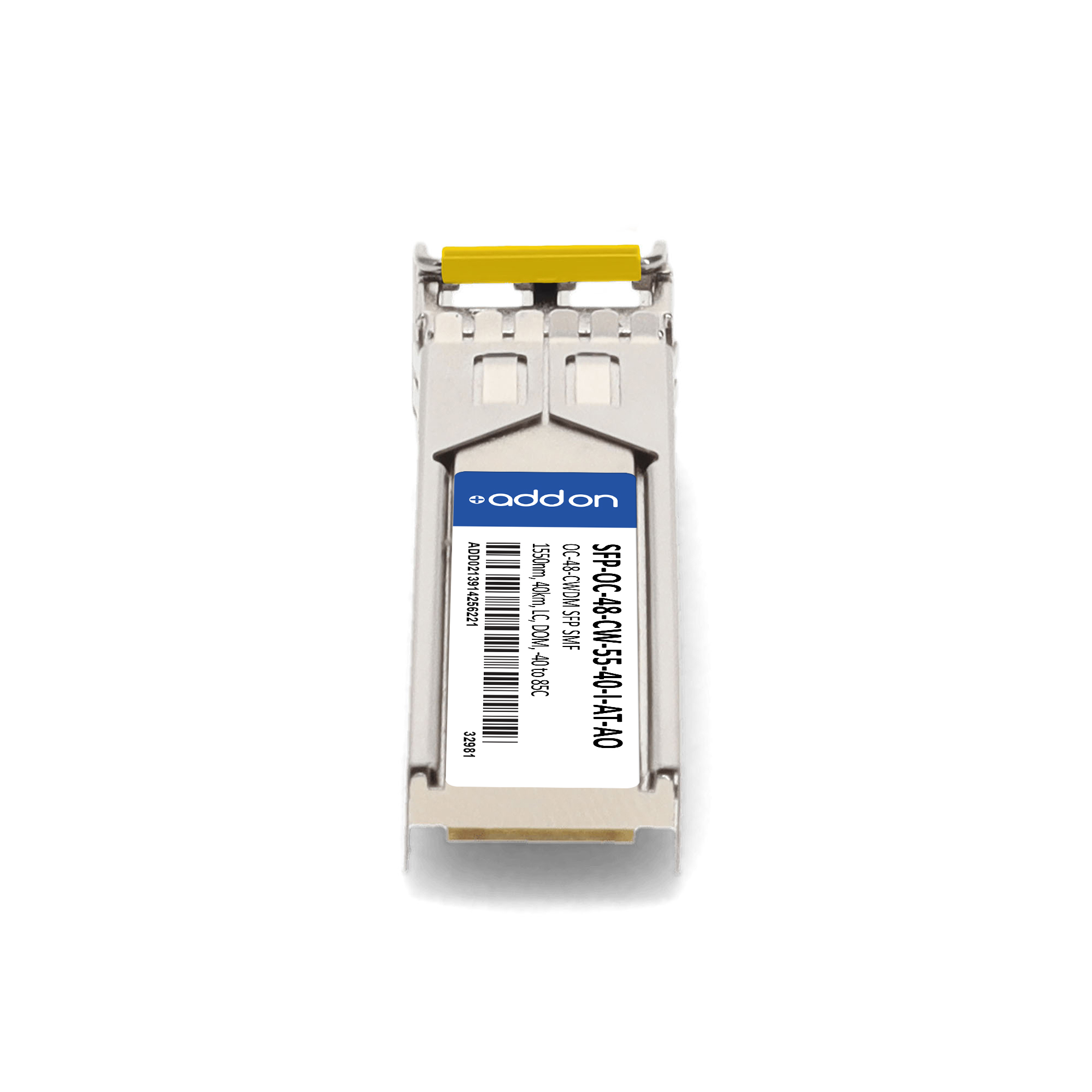 AddOn Networks SFP-OC-48-CW-55-40-I-AT-AO. SFP transceiver type: Fiber optic, Maximum data transfer rate: 40000 Mbit/s, Interface type: SFP. Product colour: Silver, Brand compatibility: Adtran. Compliance certificates: Trade Agreements Act (TAA). Quantity per pack: 1 pc(s). Package width: 69.8 mm, Package depth: 120.6 mm, Package height: 30.5 mm |