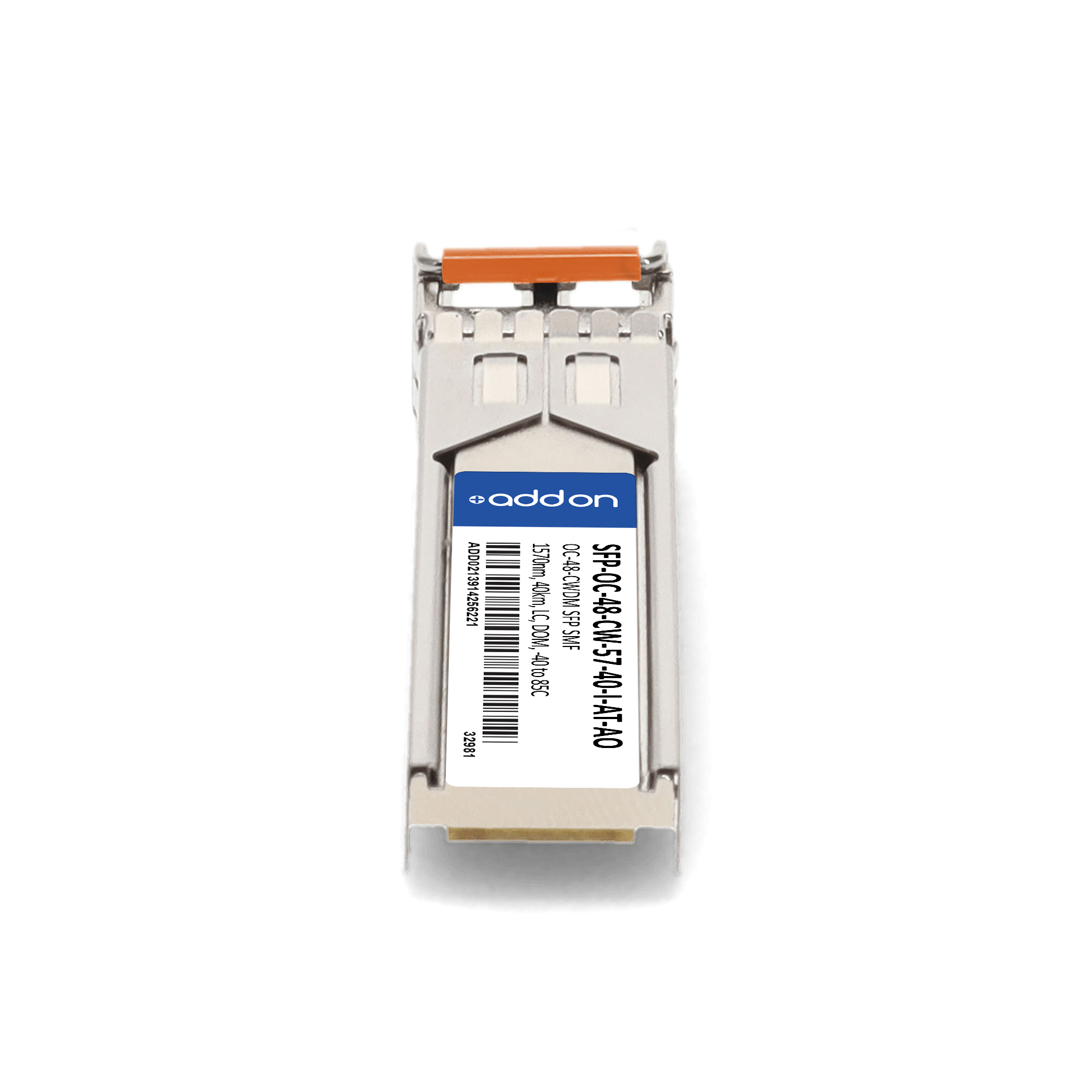 AddOn Networks SFP-OC-48-CW-57-40-I-AT-AO. SFP transceiver type: Fiber optic, Maximum data transfer rate: 40000 Mbit/s, Interface type: SFP. Product colour: Silver, Brand compatibility: Adtran. Compliance certificates: Trade Agreements Act (TAA). Quantity per pack: 1 pc(s). Package width: 69.8 mm, Package depth: 120.6 mm, Package height: 30.5 mm |