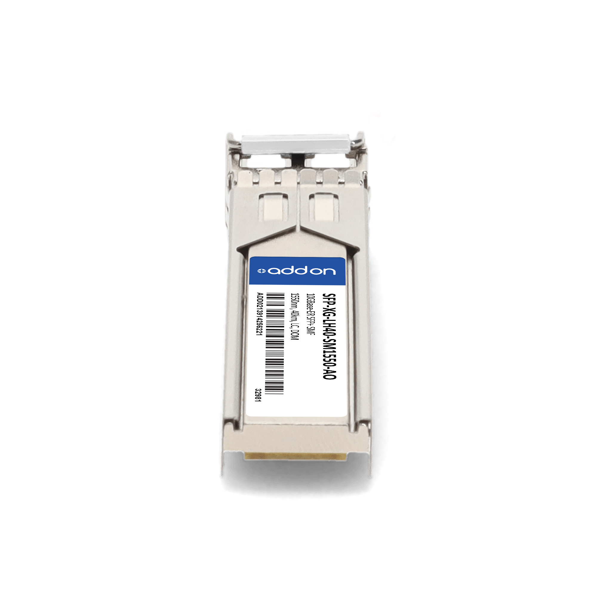 AddOn Networks SFP-XG-LH40-SM1550-AO. SFP transceiver type: Fiber optic, Maximum data transfer rate: 10000 Mbit/s, Interface type: SFP+. Product colour: Silver, Brand compatibility: H3C. Compliance certificates: Trade Agreements Act (TAA). Quantity per pack: 1 pc(s). Package width: 69.8 mm, Package depth: 120.6 mm, Package height: 30.5 mm |