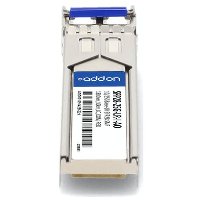AddOn Networks SFP28-25G-LR-I-AO. SFP transceiver type: Fiber optic, Maximum data transfer rate: 25000 Mbit/s, Interface type: SFP28. Product colour: Silver, Housing material: Metal, Brand compatibility: Dell. Compliance certificates: RoHS. Quantity per pack: 1 pc(s). Package width: 69.8 mm, Package depth: 120.7 mm, Package height: 30.5 mm