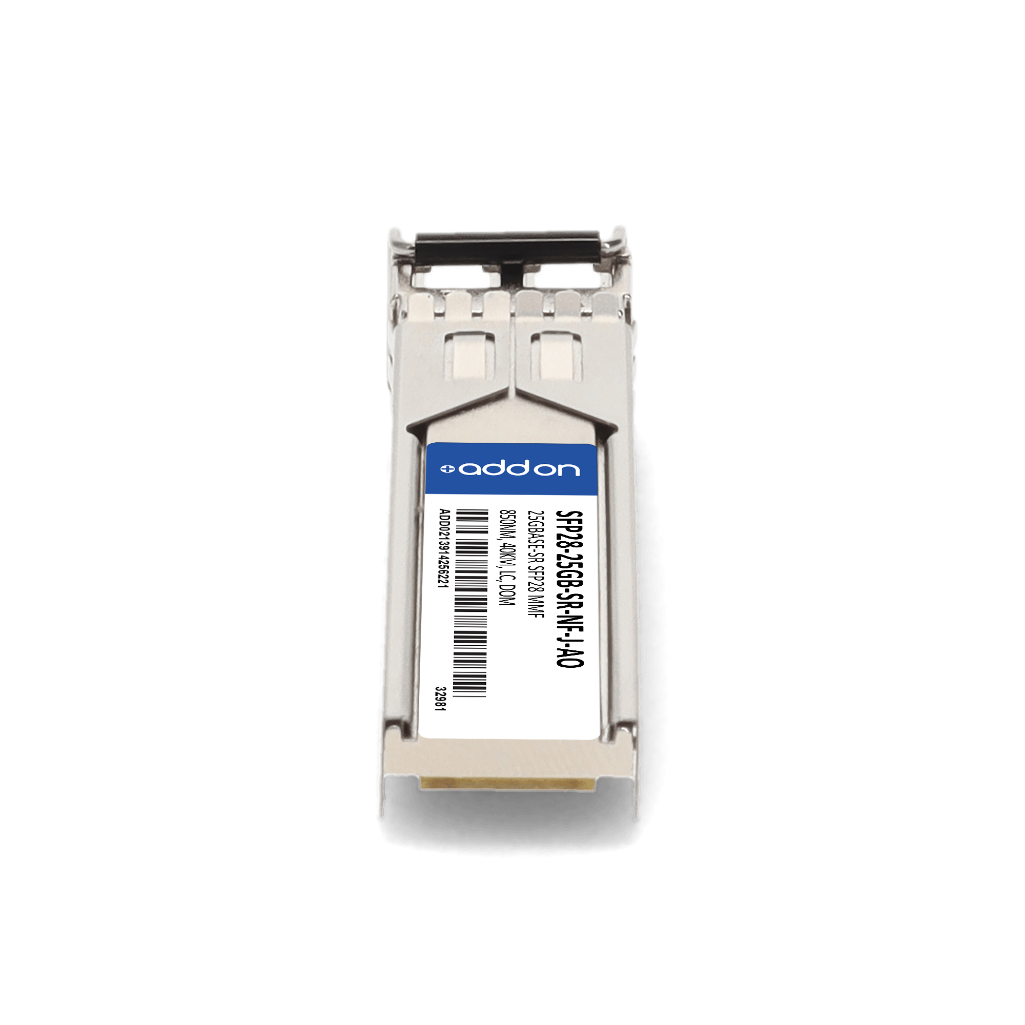 AddOn Networks SFP28-25GB-SR-NF-J-AO. SFP transceiver type: Fiber optic, Maximum data transfer rate: 25000 Mbit/s, Interface type: SFP28. Product colour: Silver, Brand compatibility: Juniper. Compliance certificates: Trade Agreements Act (TAA). Quantity per pack: 1 pc(s). Package width: 69.8 mm, Package depth: 120.6 mm, Package height: 30.5 mm |