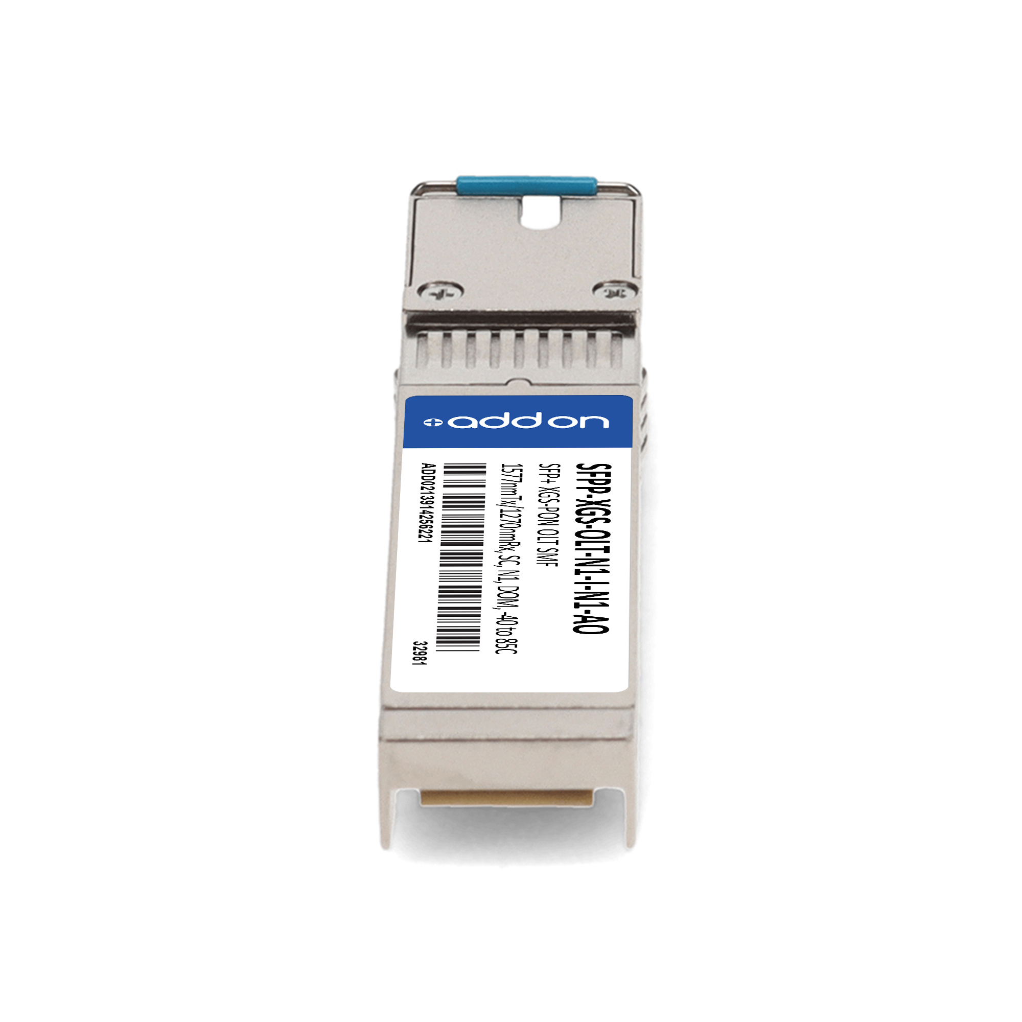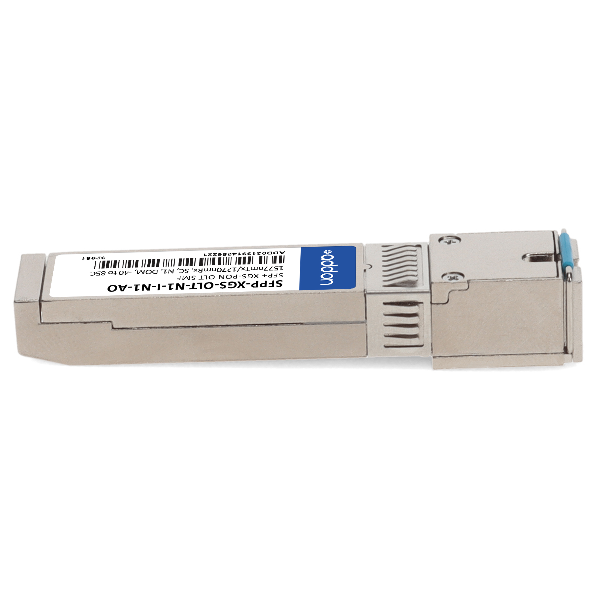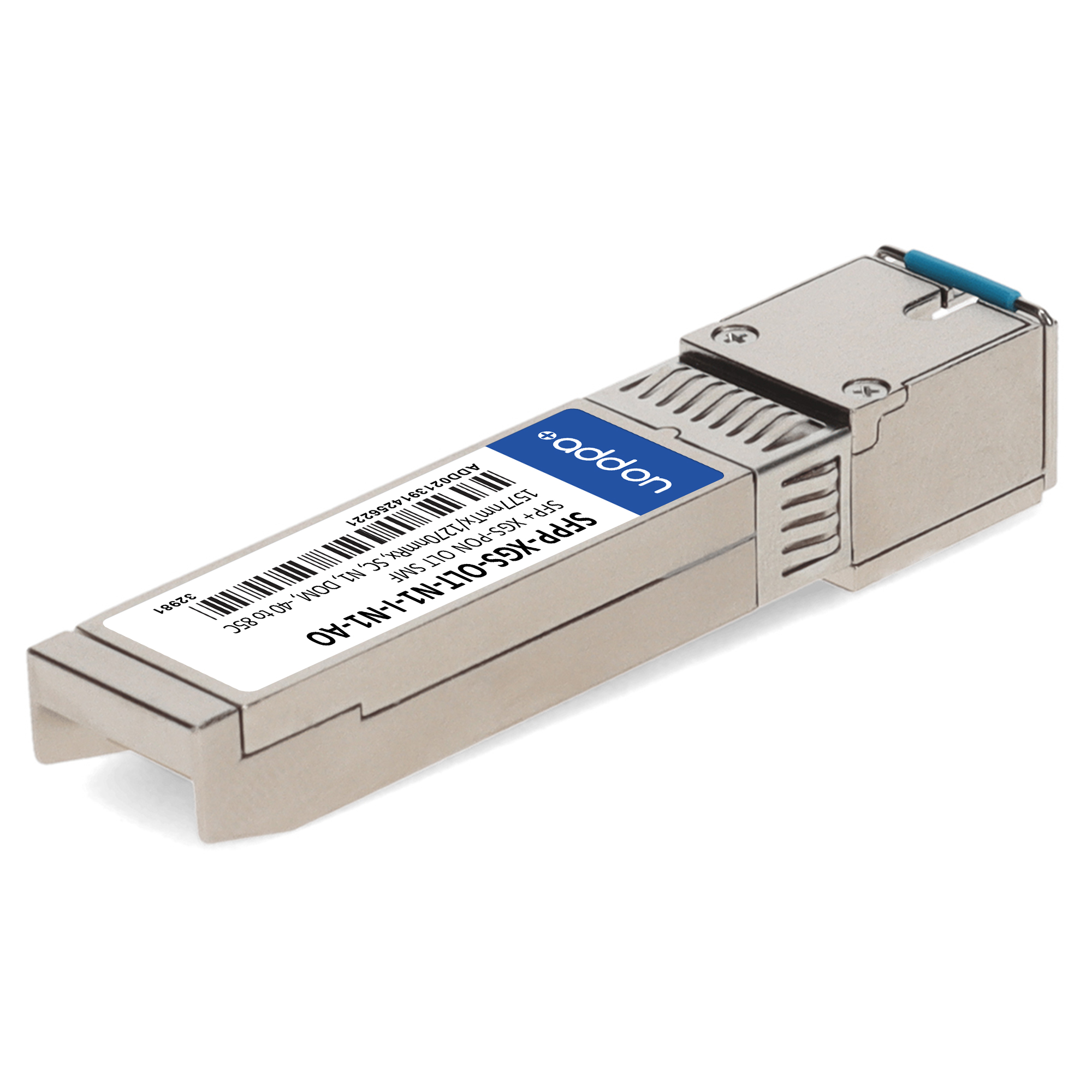 AddOn Networks SFPP-XGS-OLT-N1-I-N1-AO. SFP transceiver type: Fiber optic, Maximum data transfer rate: 10000 Mbit/s, Interface type: SFP+. Product colour: Silver, Brand compatibility: Alcatel-Lucent / Nokia. Compliance certificates: Trade Agreements Act (TAA). Quantity per pack: 1 pc(s). Package width: 69.8 mm, Package depth: 120.6 mm, Package height: 30.5 mm |