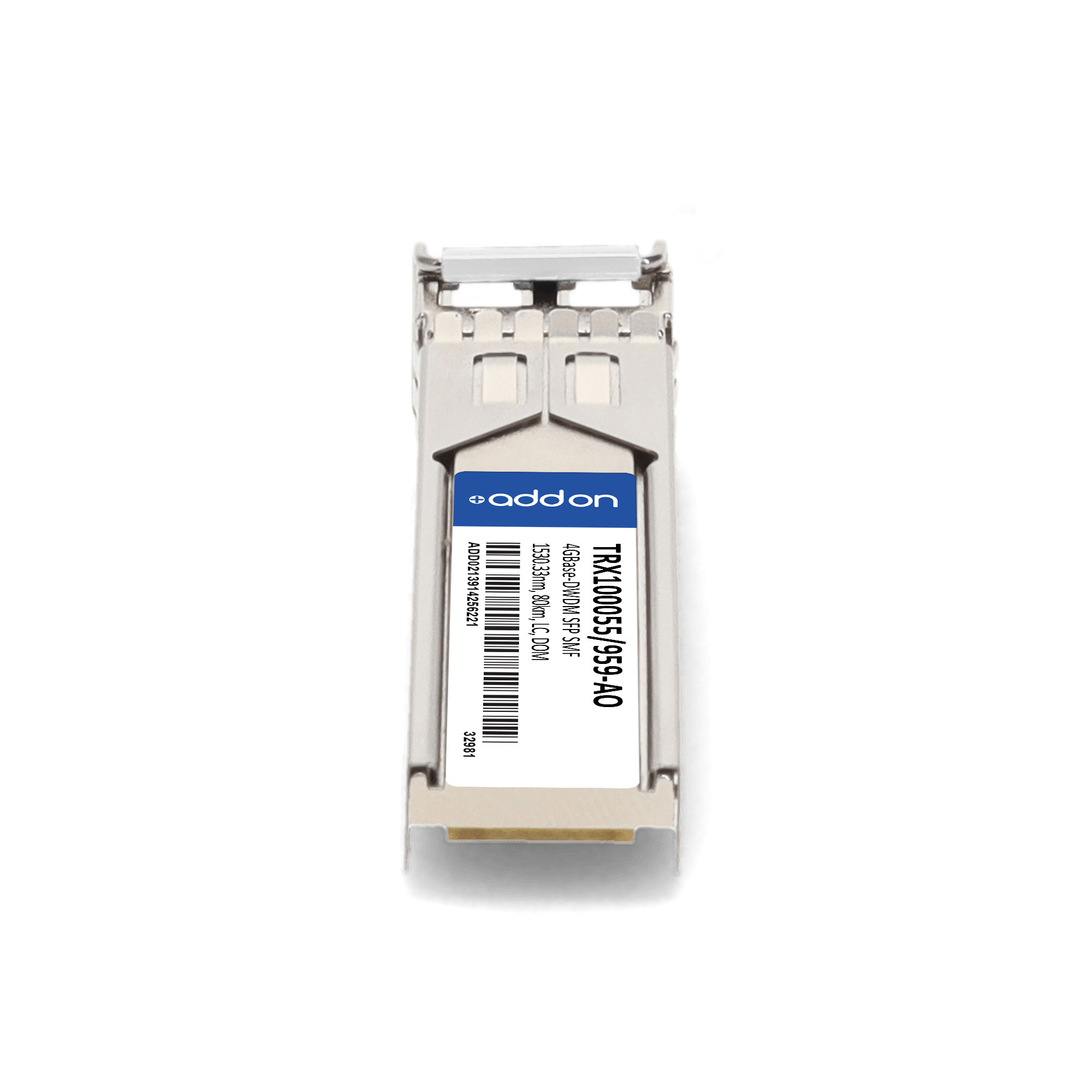 AddOn Networks TRX100055/959-AO. SFP transceiver type: Fiber optic, Maximum data transfer rate: 4000 Mbit/s, Interface type: SFP. Product colour: Silver, Brand compatibility: Infinera Corporation. Compliance certificates: Trade Agreements Act (TAA). Quantity per pack: 1 pc(s). Package width: 69.8 mm, Package depth: 120.6 mm, Package height: 30.5 mm |