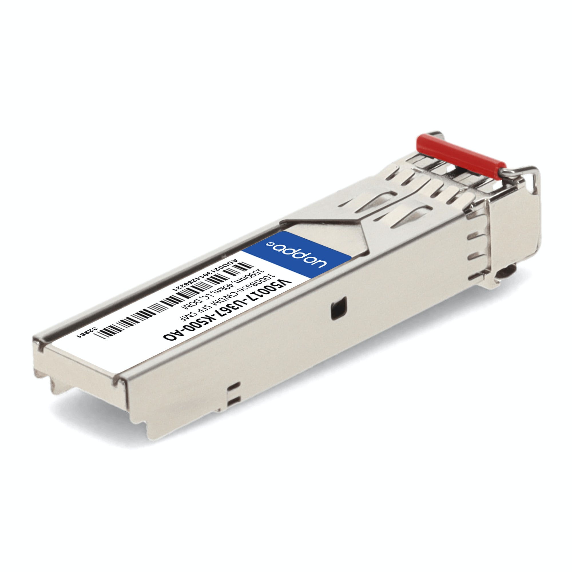 AddOn Networks V50017-U367-K500-AO. SFP transceiver type: Fiber optic, Maximum data transfer rate: 1000 Mbit/s, Interface type: SFP. Product colour: Metallic, Brand compatibility: Coriant. Quantity per pack: 1 pc(s)