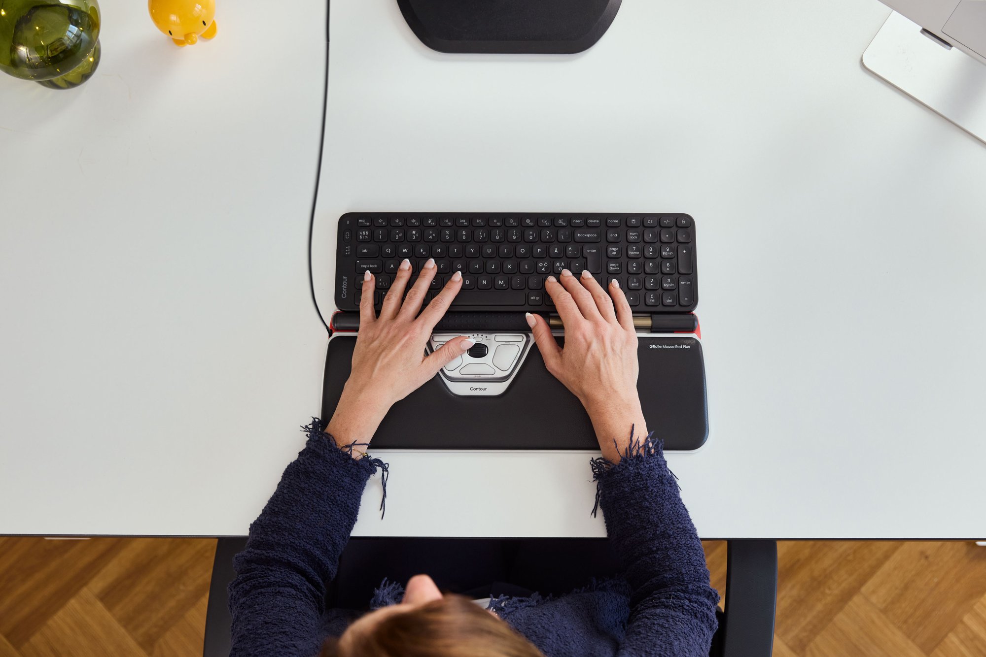 Contour Design RollerMouse Red Plus, Wired. Movement detection technology: Optical, Device interface: USB Type-C, Movement resolution: 2800 DPI, Buttons type: Pressed buttons, Buttons quantity: 6, Scroll type: Wheel/Rollerbar. Power source: Cable. Product colour: Black, Silver