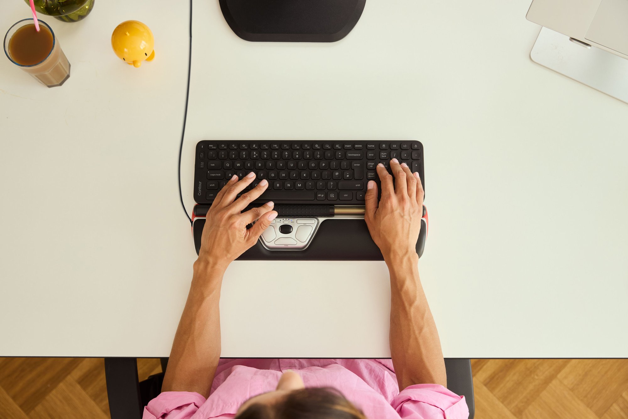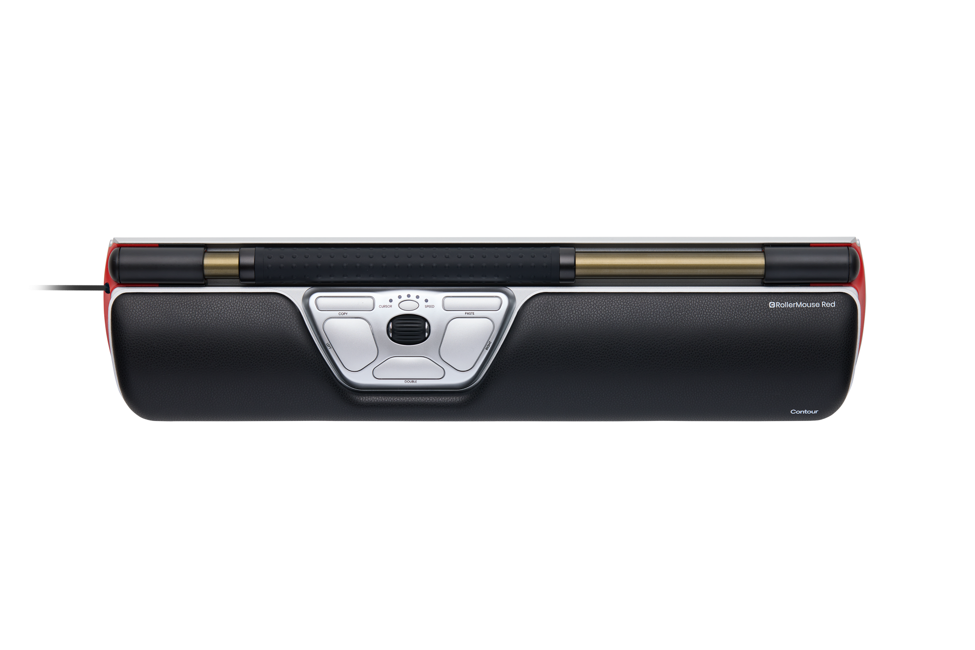 Contour Design RollerMouse Red, Wired. Movement detection technology: Optical, Device interface: USB Type-C, Movement resolution: 2800 DPI, Buttons type: Pressed buttons, Buttons quantity: 6, Scroll type: Wheel/Rollerbar. Power source: Cable. Product colour: Black, Silver