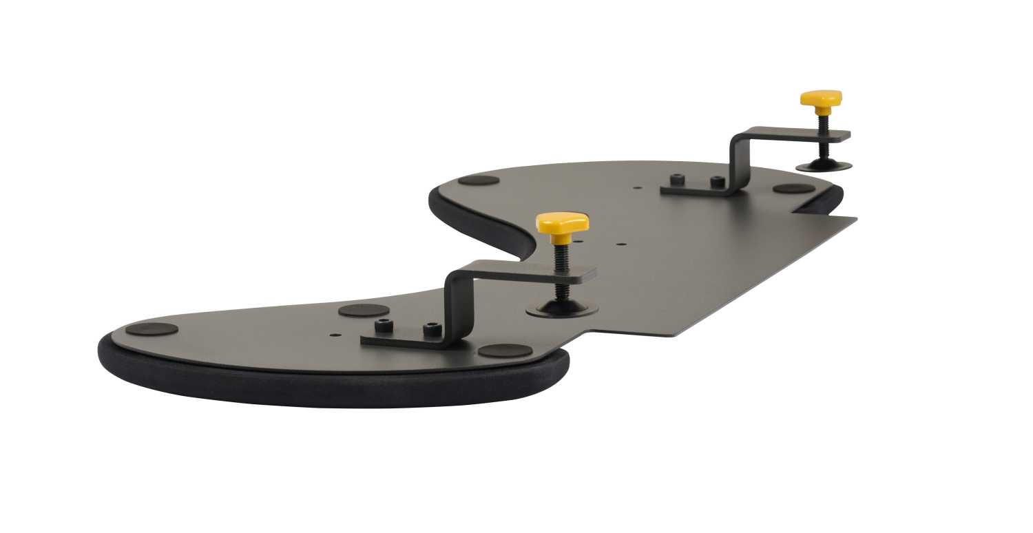 BakkerElkhuizen ErgoSlider Plus Underarm Support Asymmetrical. Product colour: Black, Dark Grey, Yellow, Material: Chipboard, Plastic, Polyurethane (PU), Steel, Attachment type: Clamp attachment. Width: 310 mm, Depth: 665 mm, Height: 80 mm. Quantity per pack: 1 pc(s), Package width: 310 mm, Package depth: 690 mm. Pallet gross weight: 350 g, Products per master (outer) case: 5 pc(s), Products per pallet: 100 pc(s)