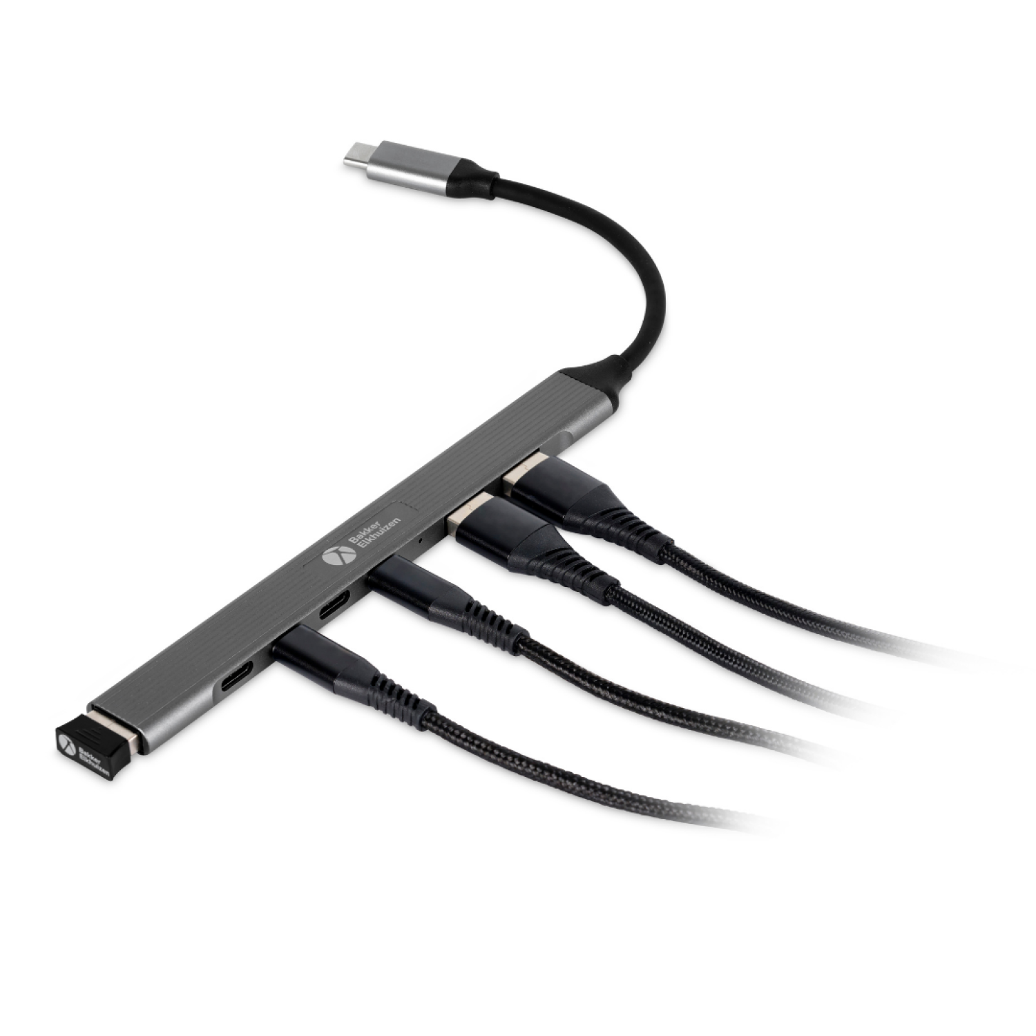 BakkerElkhuizen USB-C Hub 7-in-1 (3A+4C), 7 connections, stylish design, flexible cable and stays cool during use.. Host interface: USB Type-C, Hub interfaces: USB 2.0, USB 3.2 Gen 1 (3.1 Gen 1) Type-A, USB 3.2 Gen 1 (3.1 Gen 1) Type-C. Data transfer rate: 5000 Mbit/s, Product colour: Black, Grey, Housing material: Aluminium. Windows operating systems supported: Windows 10, Windows 10 Education, Windows 10 Education x64, Windows 10 Enterprise, Windows 10..., Other operating systems supported: ChromeOS. Width: 17 mm, Depth: 152 mm, Height: 7 mm. Quantity per pack: 1 pc(s), Package width: 61 mm, Package depth: 200 mm