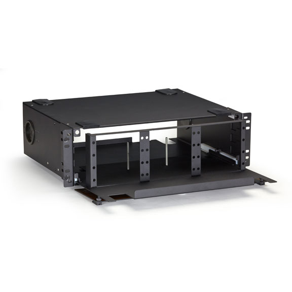 A removable rear cover makes patch cords and pigtails accessible.