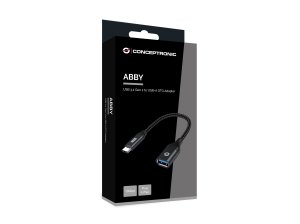 Conceptronic ABBY18B USB 3.2 Gen 2 to USB-A OTG Adapter. Connector 1: USB-C, Connector 2: USB-A. Product colour: Black