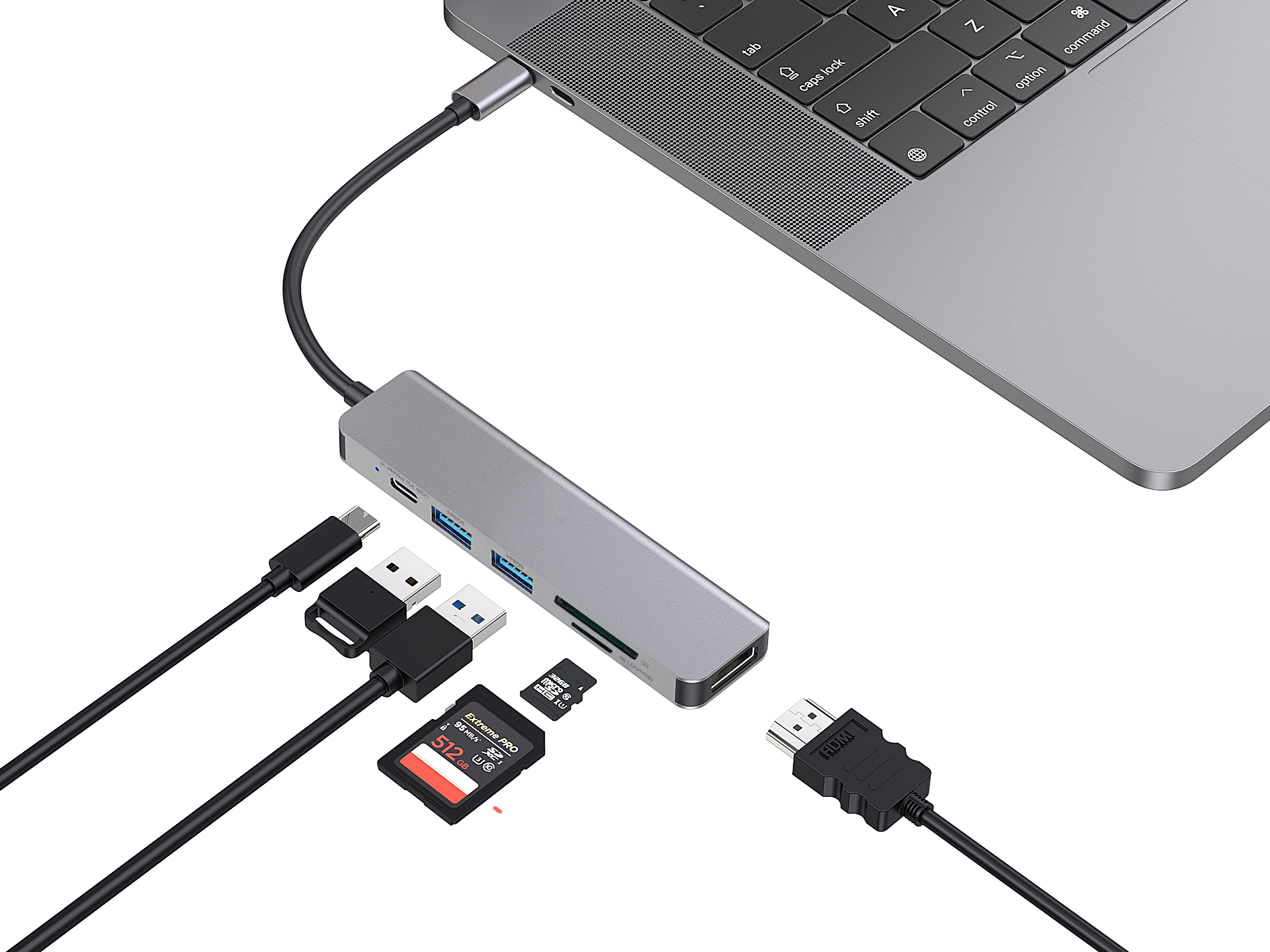 - 6-in-1 USB-C to HDMI/USB-C PD/USB 3.0 multiport adapter