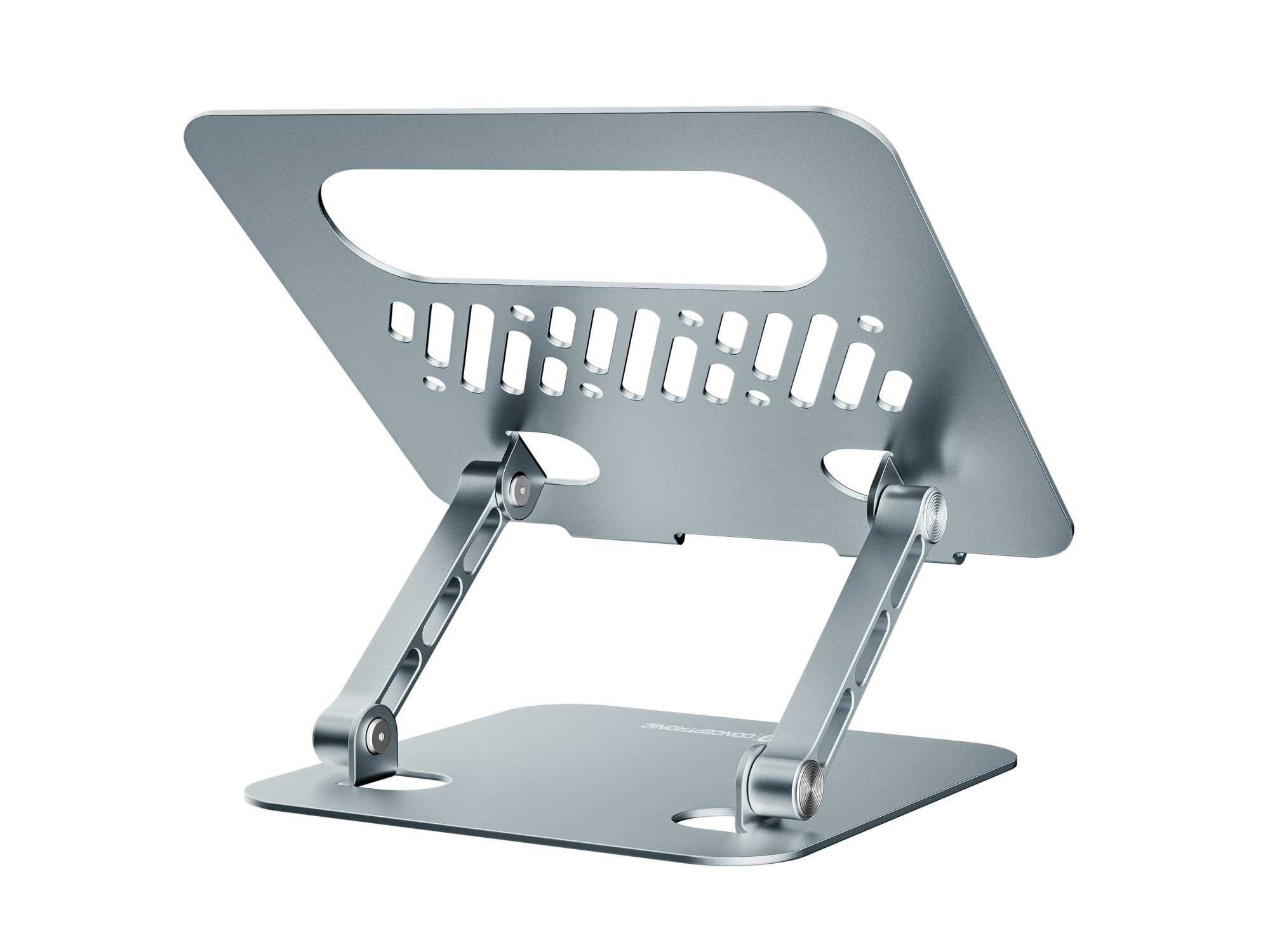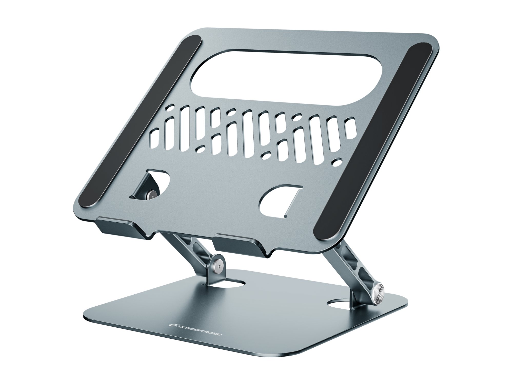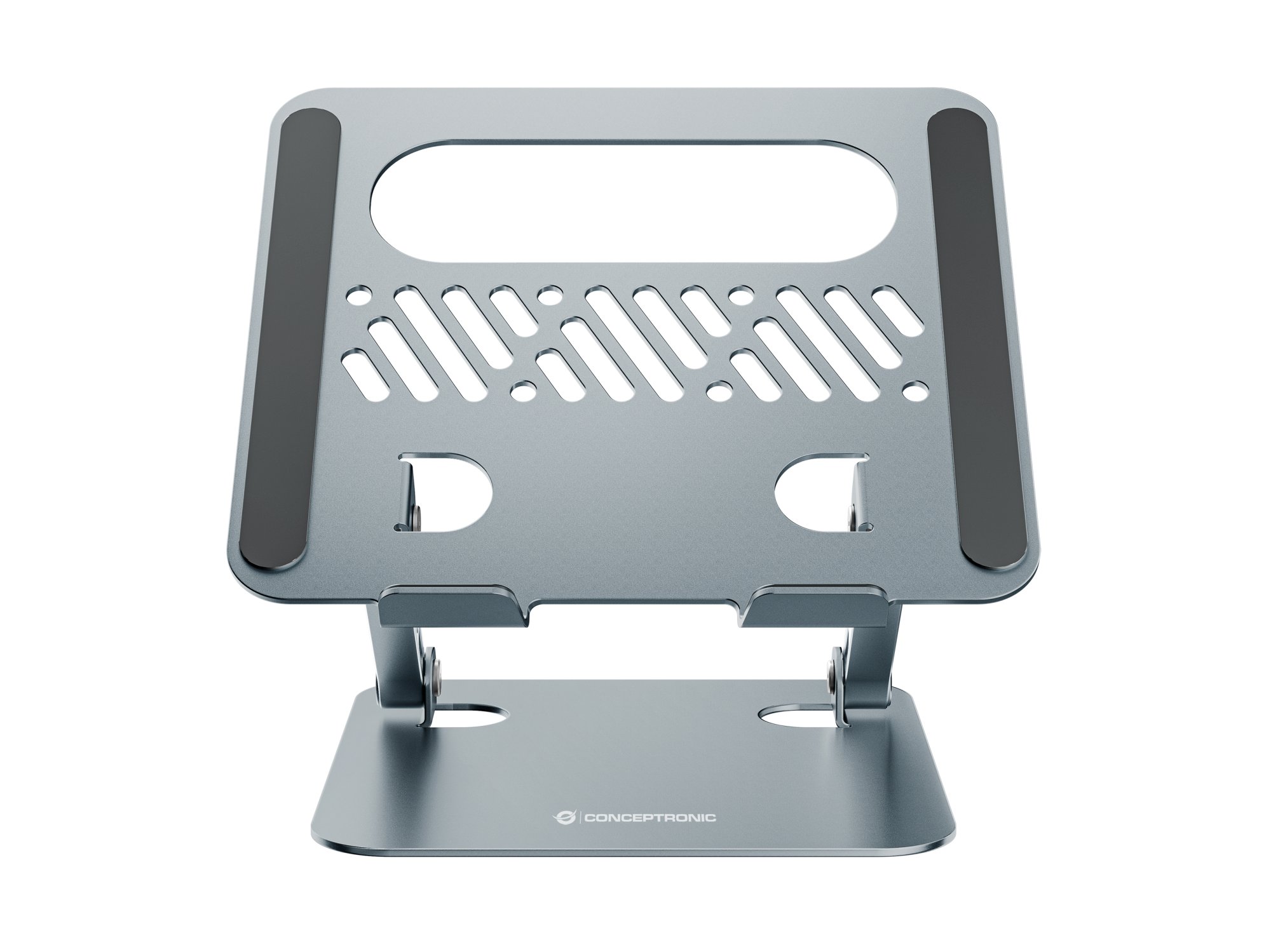 Conceptronic THANA10G Foldable Laptop Stand, Adjustable Height. Product type: Laptop stand, Product colour: Grey, Material: Aluminium. Width: 240 mm, Depth: 220 mm, Height: 50 mm. Package width: 269 mm, Package depth: 62 mm, Package height: 247 mm. Master (outer) case width: 506 mm, Master (outer) case length: 330 mm, Master (outer) case height: 296 mm
