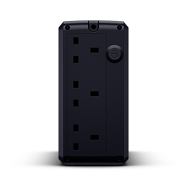 CyberPower UT800EG-UK. UPS topology: Line-Interactive, Output power capacity: 0.8 kVA, Output power: 400 W. AC outlet types: Type G (BS 1363), AC outlets quantity: 3 AC outlet(s). Typical backup time at full load: 5 min, Battery recharge time: 6 h. Form factor: Tower, Product colour: Black, Housing material: Plastic. Compliance certificates: RoHS, CE