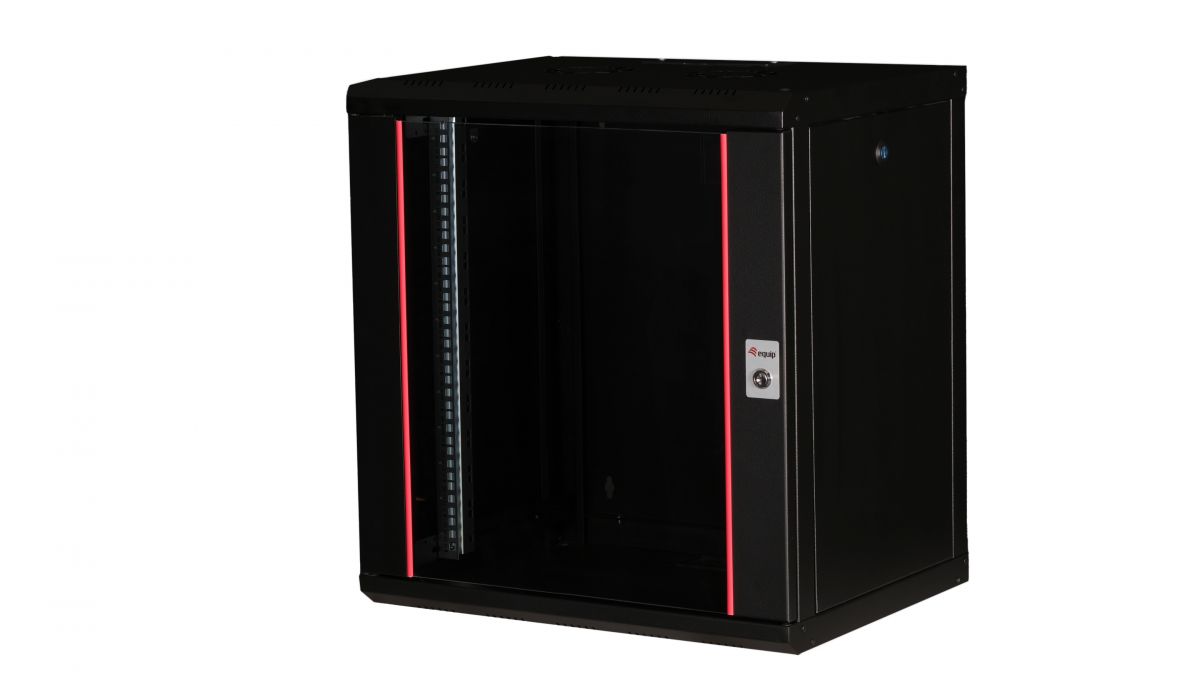 Equip Pro Mount 19' Cabinet, 12U, 600X450MM, RAL9005 Black. Type: Wall mounted rack, Rack capacity: 12U, Key lock, Rack rails. Weight: 22.5 kg. Product colour: Black
