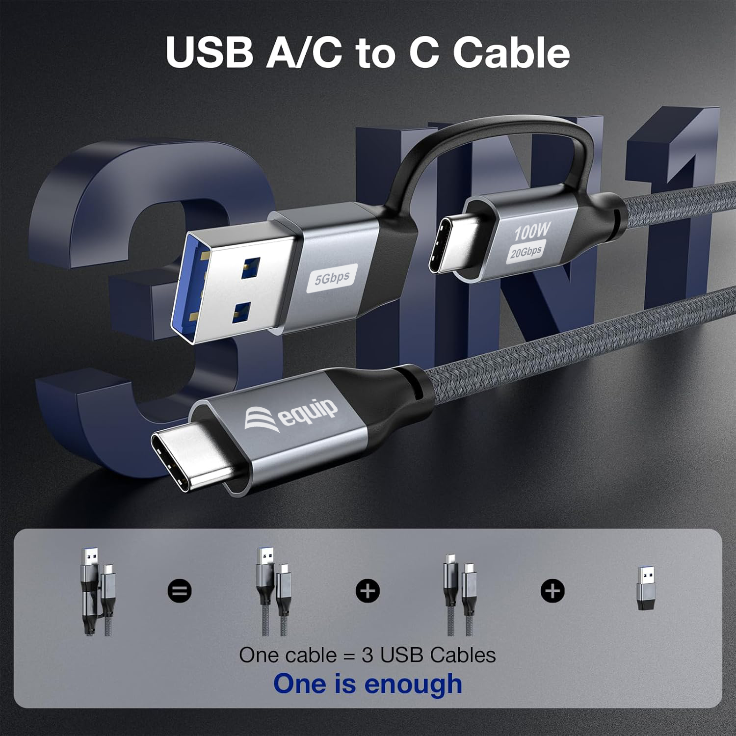 - 2-in-1 functionality: USB-C to USB-C cable with USB-A adapter