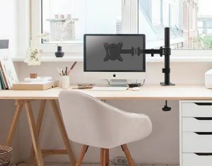 Equip 13"-27" Articulating Monitor Desk Mount Bracket. Mounting: Clamp, Maximum weight capacity: 8 kg, Minimum screen size: 33 cm (13"), Maximum screen size: 68.6 cm (27"), Minimum VESA mount: 75 x 75 mm, Maximum VESA mount: 100 x 100 mm. Swivel angle range: -90 - 90°, Tilt angle range: -45 - 45°. Product colour: Black