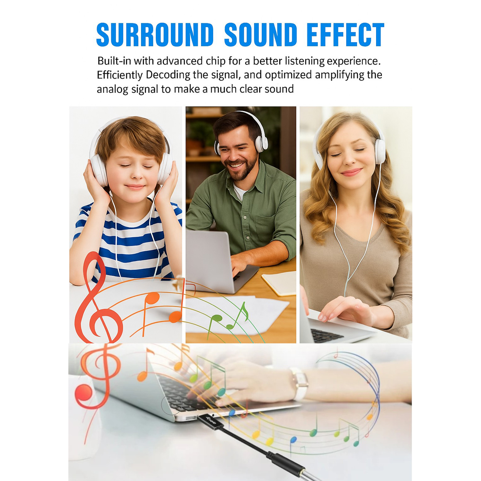 Built-in DAC chip and high-quality copper wire to ensure stable and virtually loss-free transmission of audio signal