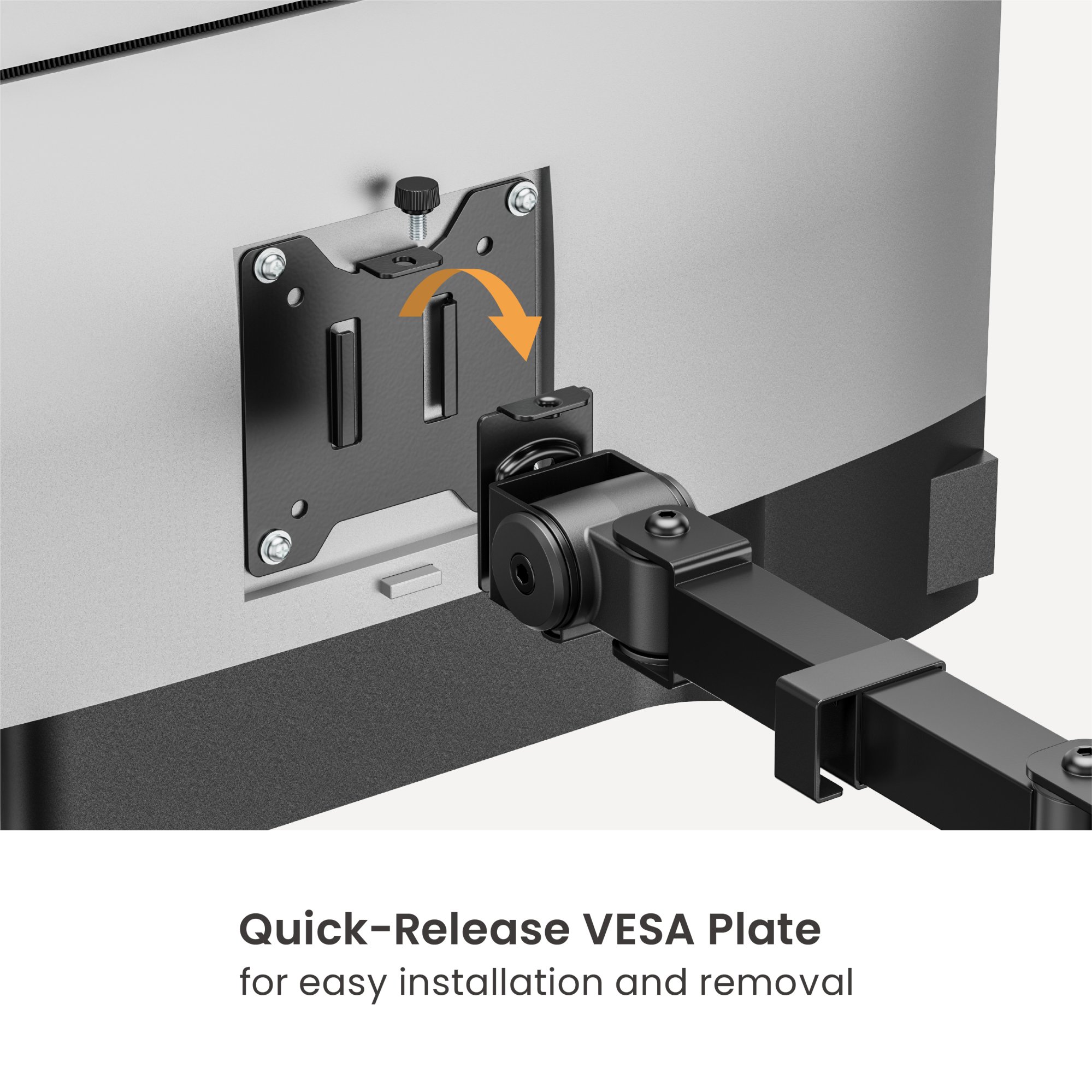 - Quick-Release VESA Plate: for easy installation and removal