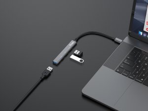 Equip 4-Port USB 3.0/2.0 Hub, USB-C. Host interface: USB 3.2 Gen 1 (3.1 Gen 1) Type-C, Hub interfaces: USB 2.0, USB 3.2 Gen 1 (3.1 Gen 1) Type-A. Data transfer rate: 5000 Mbit/s, Product colour: Black, Grey, Housing material: Aluminium. Width: 17.2 mm, Depth: 7.3 mm, Height: 93 mm. Quantity per pack: 1 pc(s), Package width: 23 mm, Package depth: 75 mm. Master (outer) case width: 230 mm, Master (outer) case length: 180 mm, Master (outer) case height: 400 mm