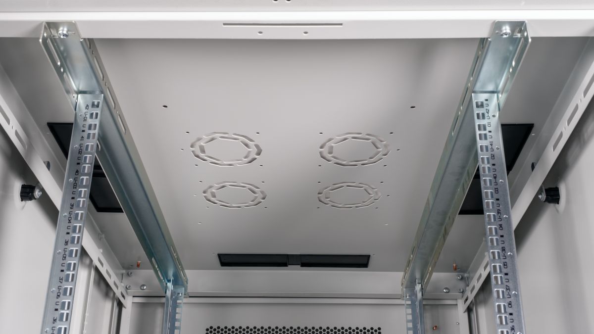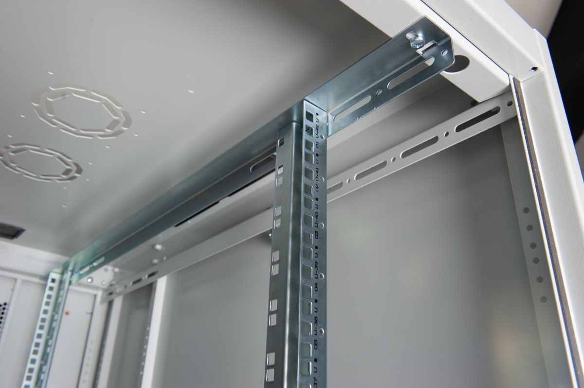 The cabinet comes with a steel/perforated frontdoor to combine durability with optimal cooling efficiency