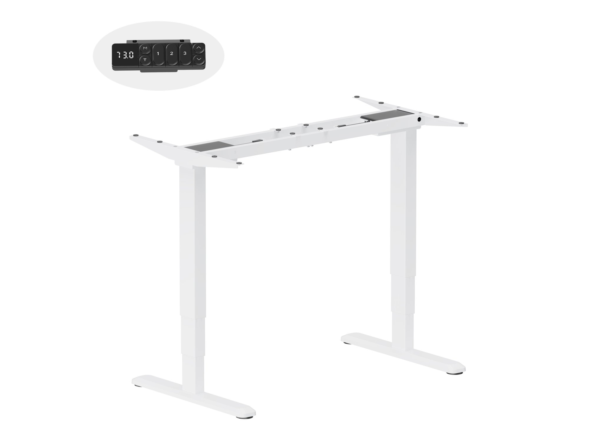 Equip ERGO Electric Sit-Stand Desk Frame, White. Maximum weight capacity: 125 kg, Height adjustment type: Electric, Number of legs: 2 leg(s). Minimum width: 100 cm, Maximum width: 170 cm, Depth: 600 mm. Package width: 980 mm, Package depth: 305 mm, Package height: 145 mm. AC adapter input voltage: 100 - 240 V. Master (outer) case width: 980 mm, Master (outer) case length: 305 mm, Master (outer) case height: 145 mm