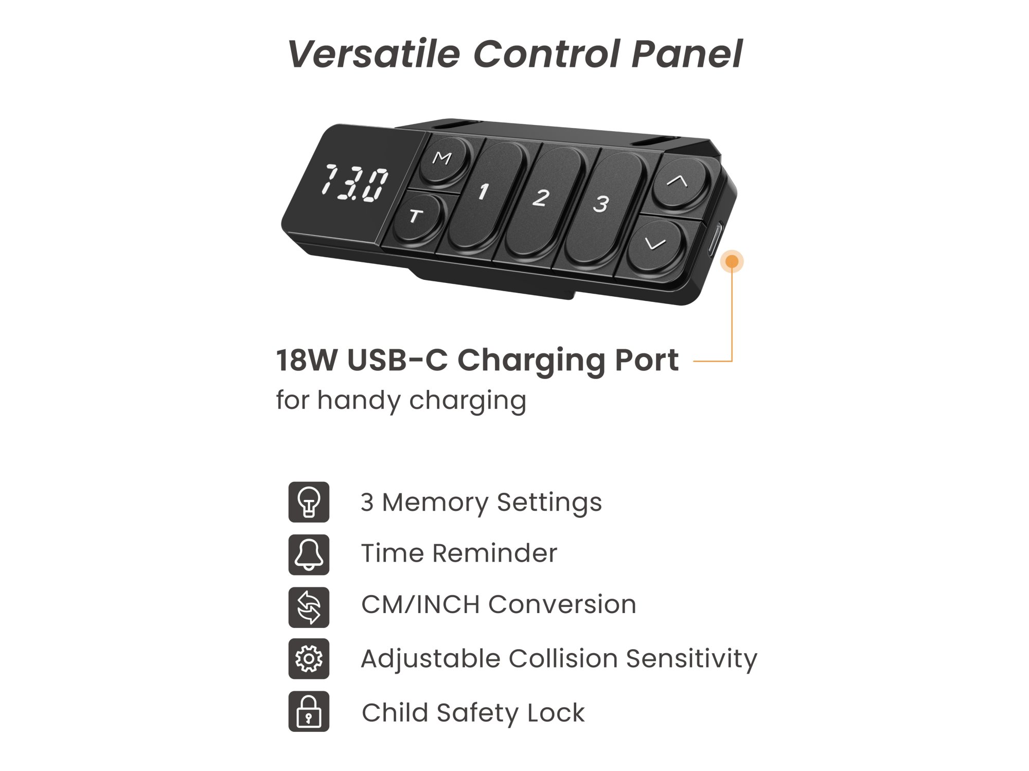 - With 1 x USB-C Charging port (Max 18W) on Control panel
