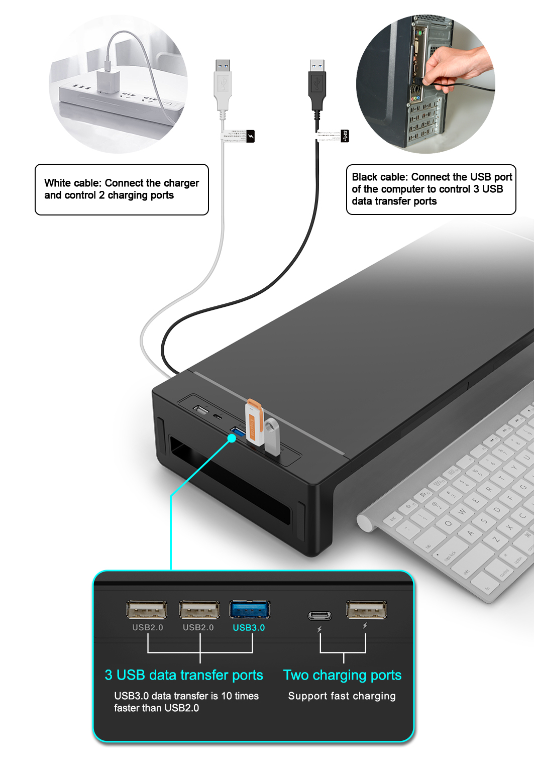 - USB Hubs with USB-A (5Gbps) x 1 + USB 2.0 x 2