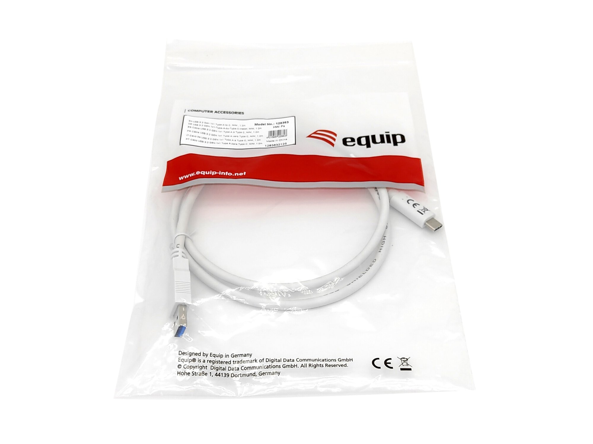 Equip USB 3.2 Gen 1 C to A Cable, 0.5m, 5Gbps, White. Cable length: 0.5 m. Connector 1: USB C, Connector 2: USB A, USB version: USB 3.2 Gen 1 (3.1 Gen 1), Maximum data transfer rate: 5 Gbit/s, Connector contacts plating: Nickel, Product colour: White