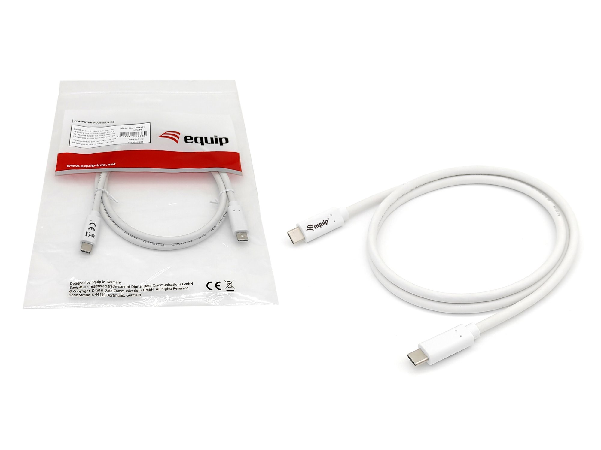 Equip USB 3.2 Gen 1 C to C Cable, 0.5m, PD 60W, 5Gbps, White. Cable length: 0.5 m. Connector 1: USB C, Connector 2: USB C, USB version: USB 3.2 Gen 1 (3.1 Gen 1), Maximum data transfer rate: 5 Gbit/s, Connector contacts plating: Nickel, Product colour: White