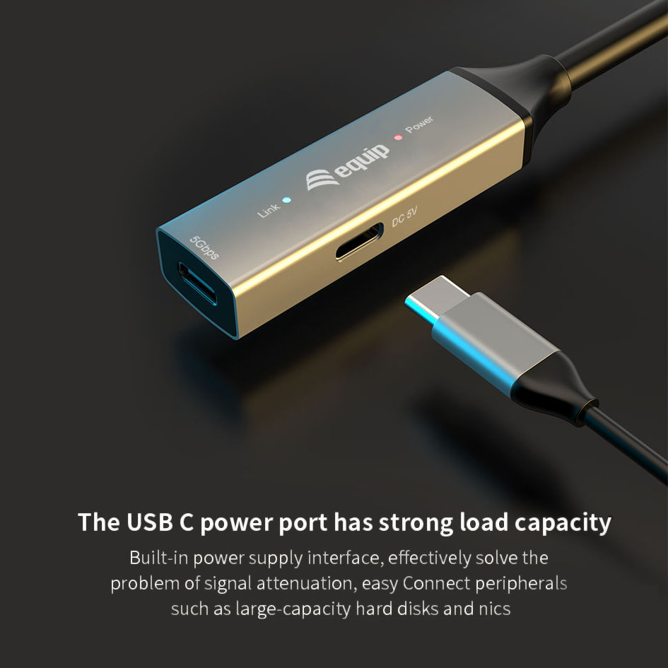 Equip USB-C to C Active extenstion Cable, 10m, 5Gbps, 10 m, USB C, USB C, USB 3.2 Gen 1 (3.1 Gen 1), 5 Gbit/s, Black