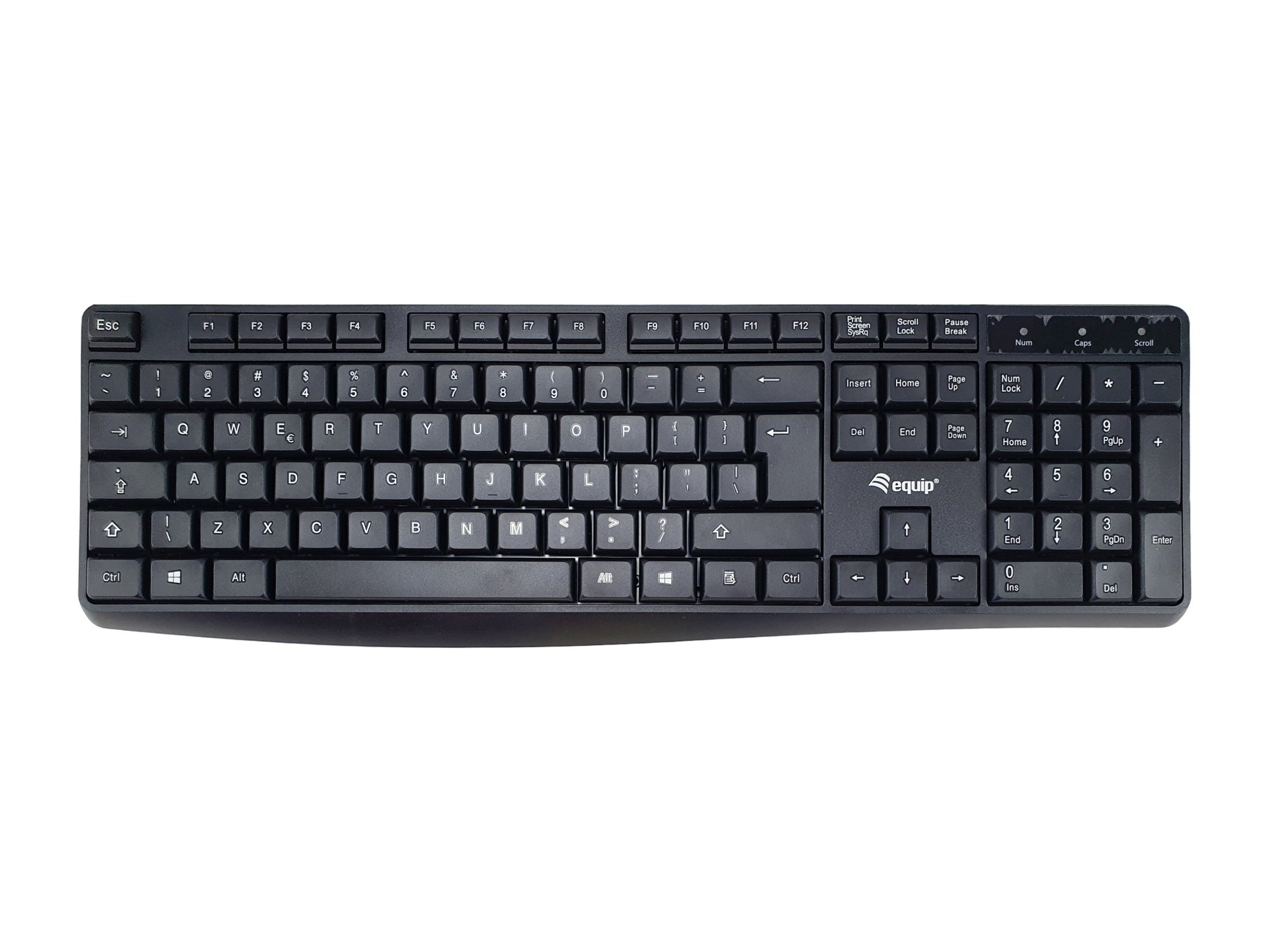 Equip Wired USB Keyboard, US/International layout (QWERTY). Keyboard form factor: Full-size (100%). Keyboard style: Straight. Connectivity technology: Wired, Device interface: USB, Keyboard layout: QWERTY, Keyboard number of keys: 105. Cable length: 1.5 m. Recommended usage: Office. Product colour: Black