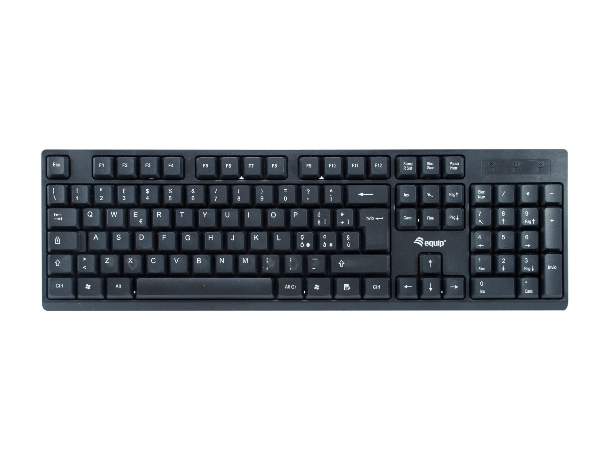 Equip Wireless Keyboard & Mouse Set, IT Layout. Keyboard form factor: Full-size (100%). Keyboard style: Straight. Connectivity technology: Wireless, Device interface: RF Wireless, Keyboard layout: QWERTY, Keyboard number of keys: 105, Recommended usage: Office. Product colour: Black. Mouse included
