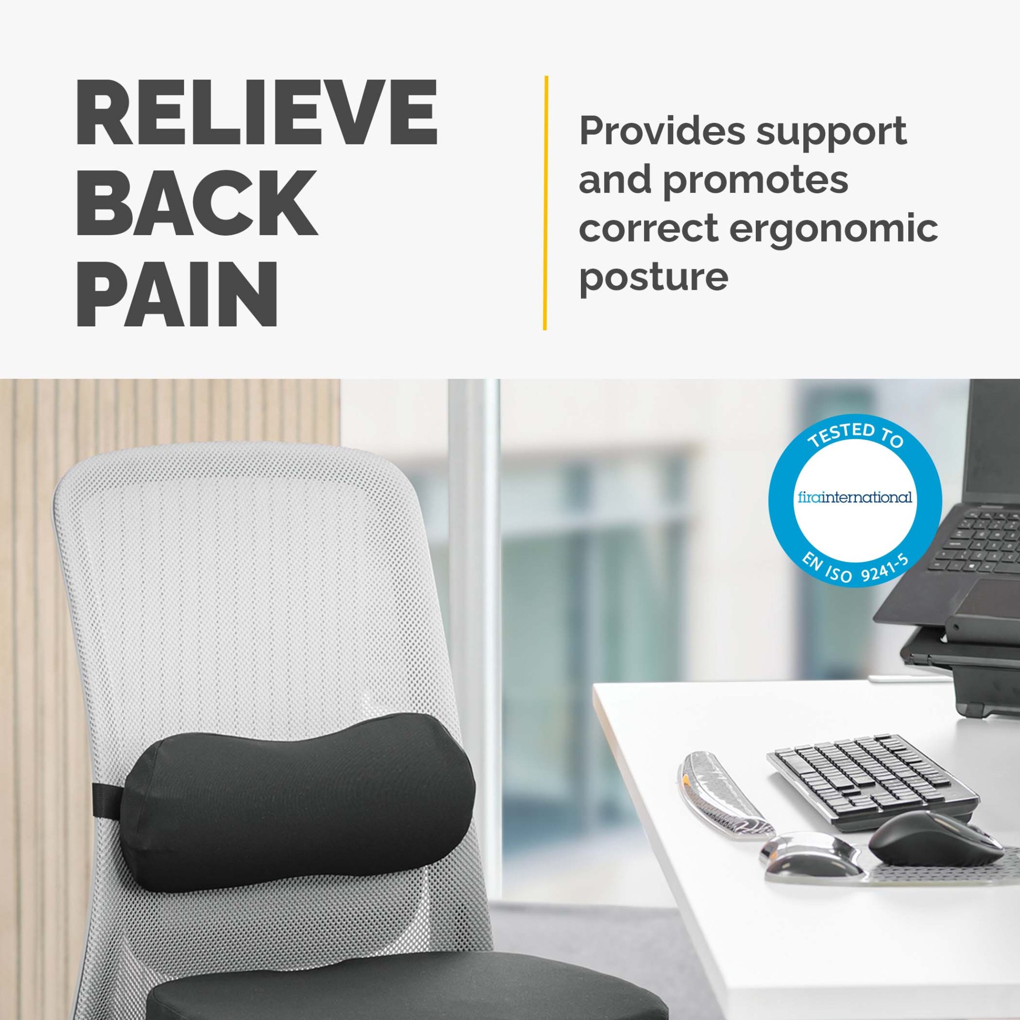 REDUCE BACK DISCOMFORT - Reduce back discomfort with the Fellowes Breyta lumbar cushion, which provides support and encourages correct ergonomic posture
