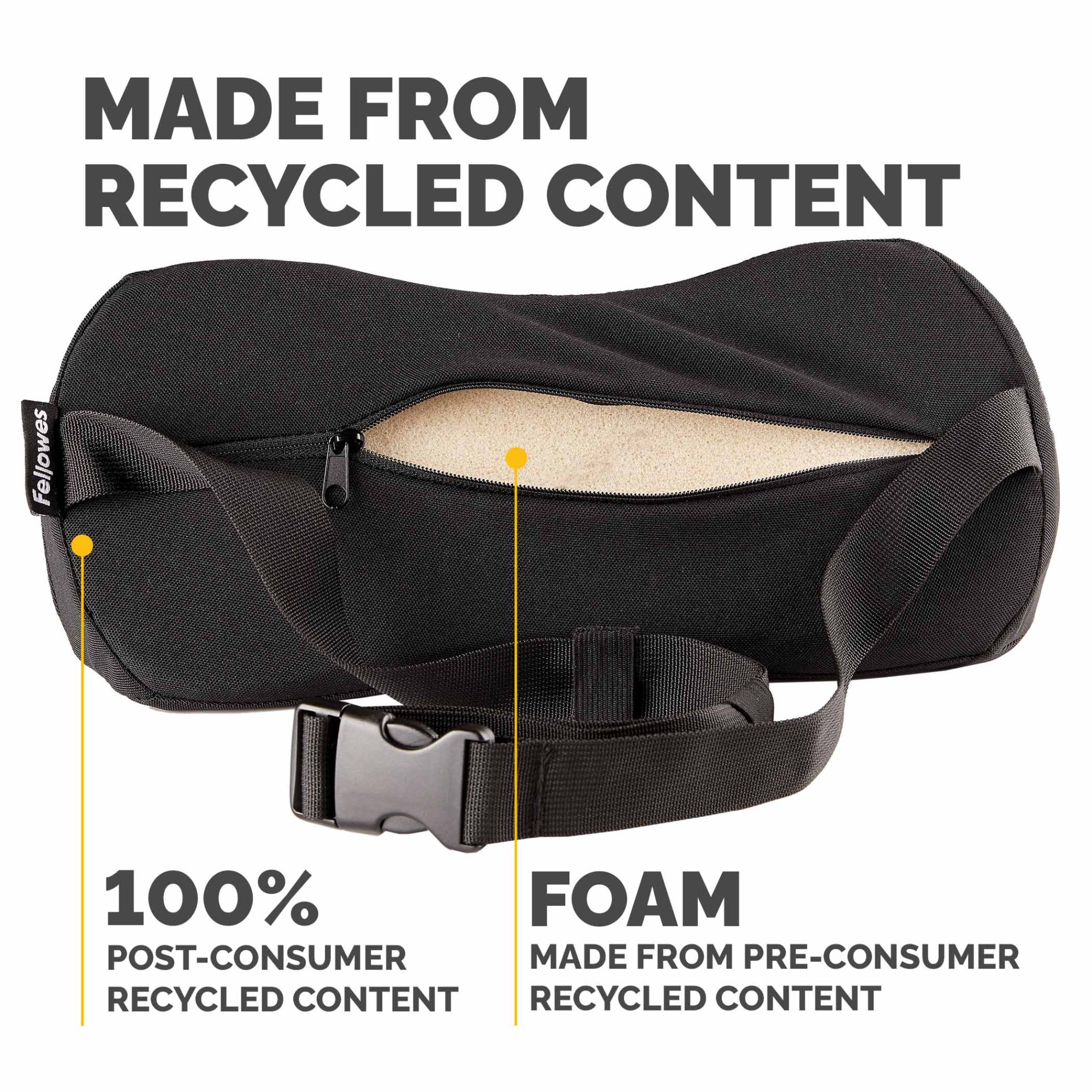MADE FROM RECYCLED CONTENT - The foam contains post-consumer recycled content from mattresses. The fabric cover is made from 100% post-consumer recycled polyester
