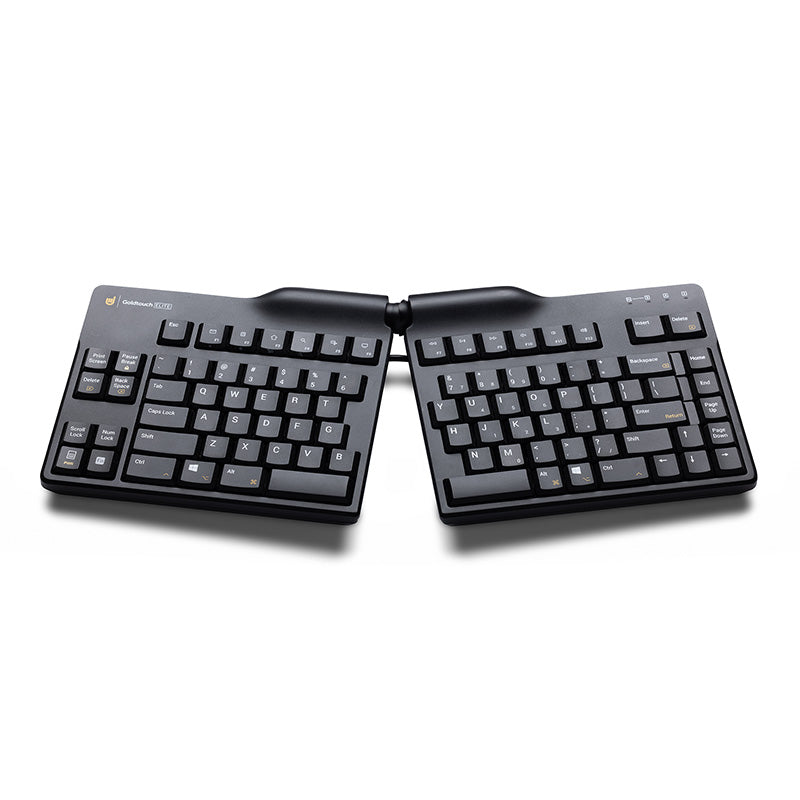 Goldtouch Elite. Keyboard style: Straight. Connectivity technology: Wired, Device interface: USB, Keyboard layout: QWERTY. Cable length: 1.46 m. Recommended usage: Home/Office. Product colour: Black