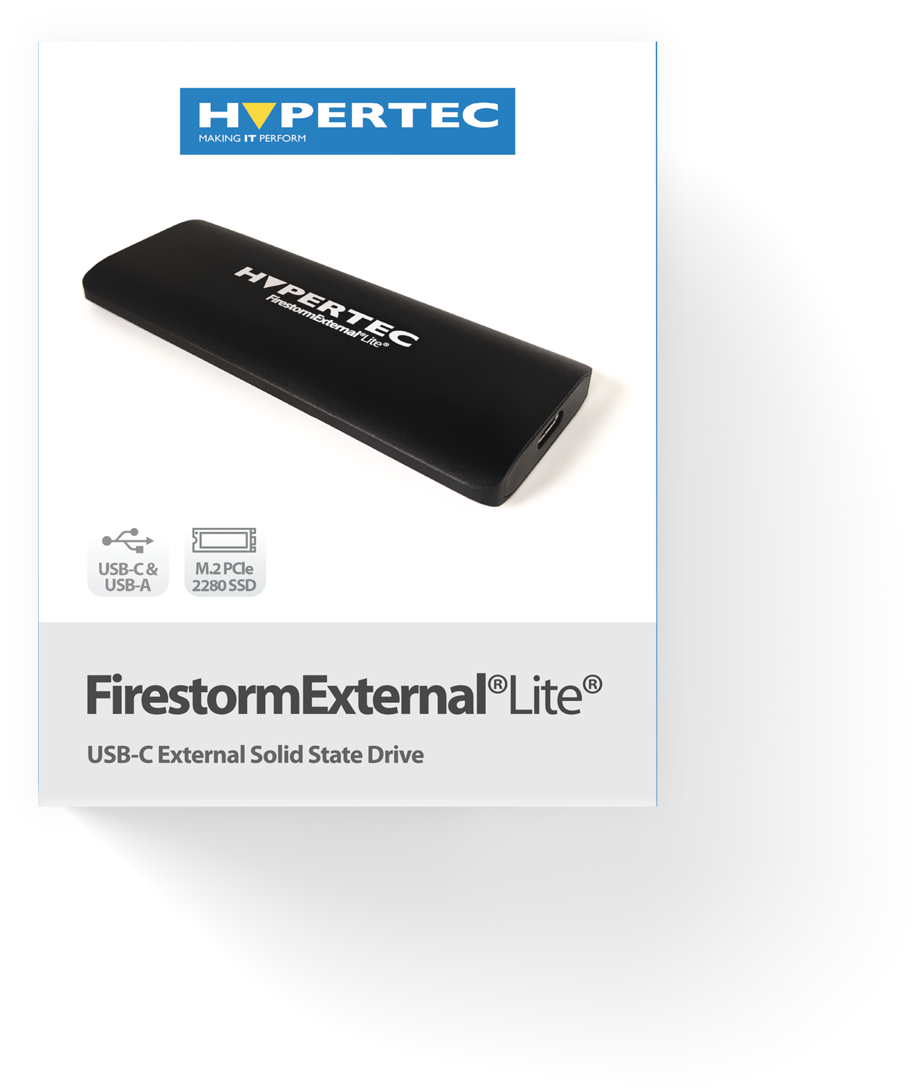 Hypertec FirestormExternal Lite 1TB SSD - slimline aluminum USB3.1 PCIe Gen2 SSD with 950MB/s read / 950MB/s write.