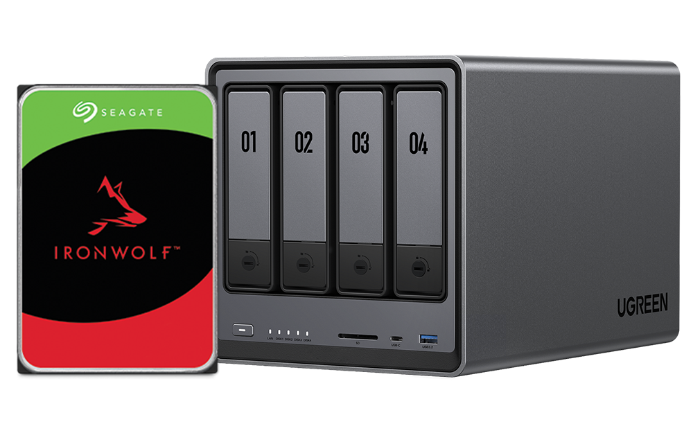 UGREEN NASync DXP4800 16TB (Seagate Ironwolf) 4-Bay NAS with Intel N100 Quad-Core CPU (Up to 3.4GHz) 8GB DDR5 2x M.2 PCIe Slots 2.5GbE Port SD Card Reader (Diskless)