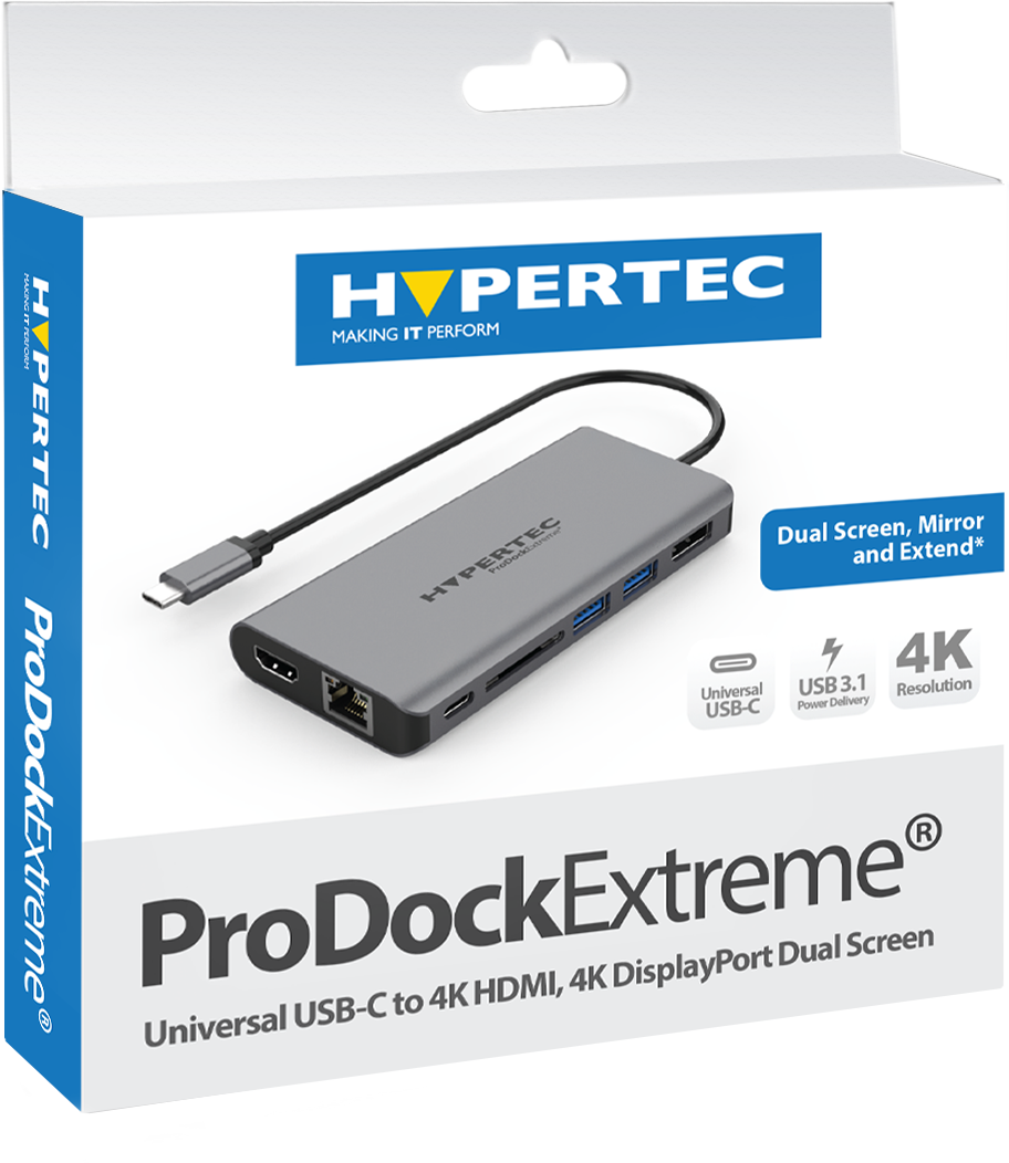 Hypertec ProDock ProDockExtreme Gen2 - Universal USB-C Dock with HDMI DisplayPort Dual Screen