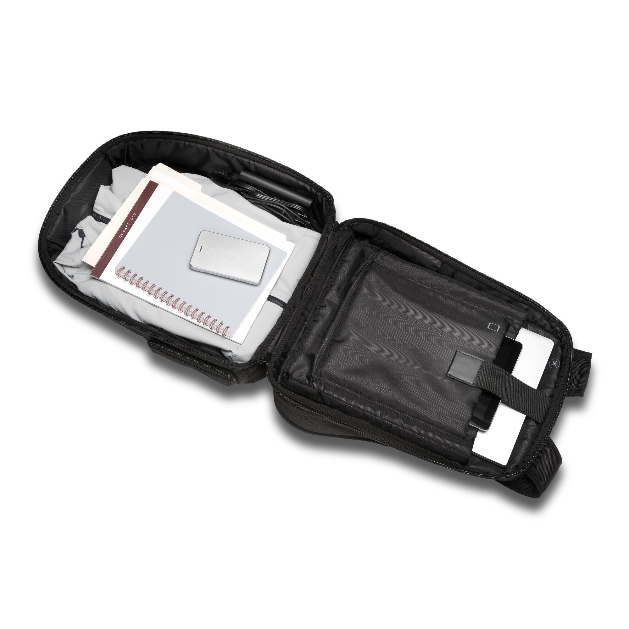 - Laptop security compartment with a puncture-resistant, lockable zip secures your laptop or tablet from intrusion.