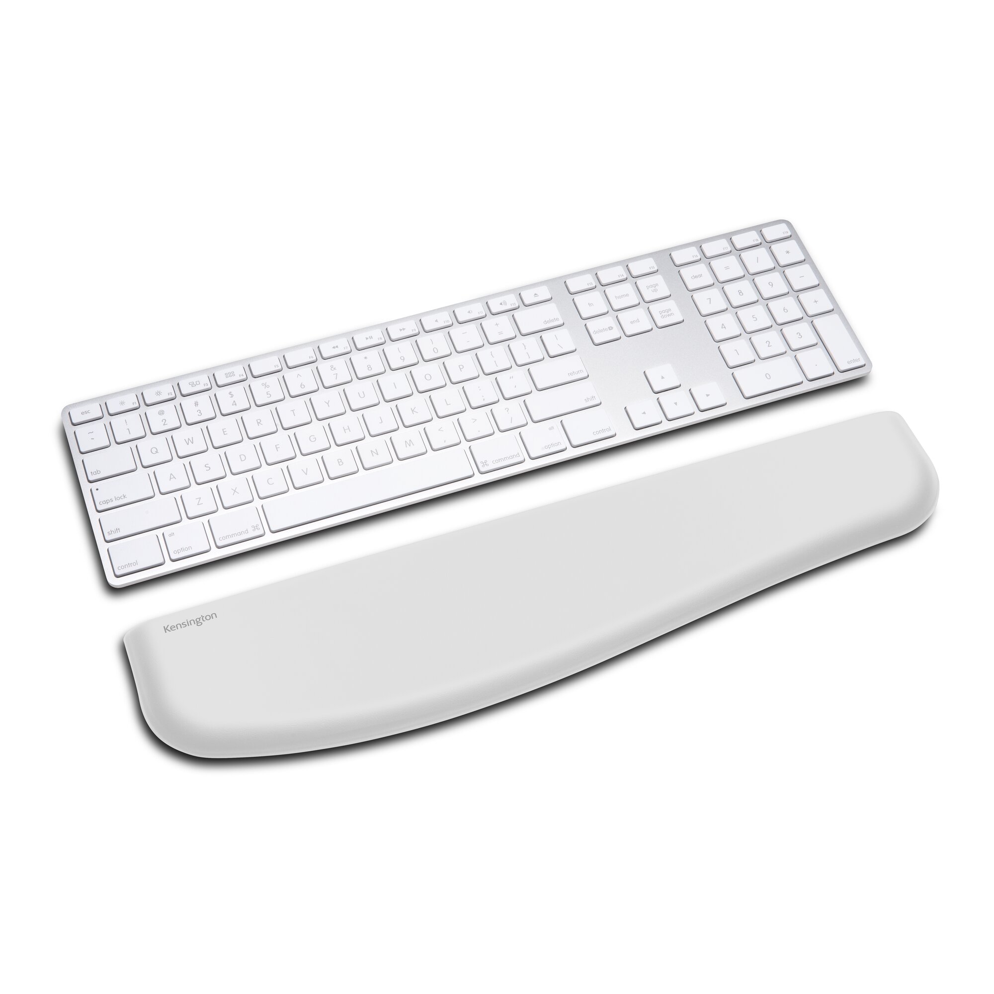 - Contoured shape fits the entire length of the keyboard and provides additional padding and support for thumb rest areas
