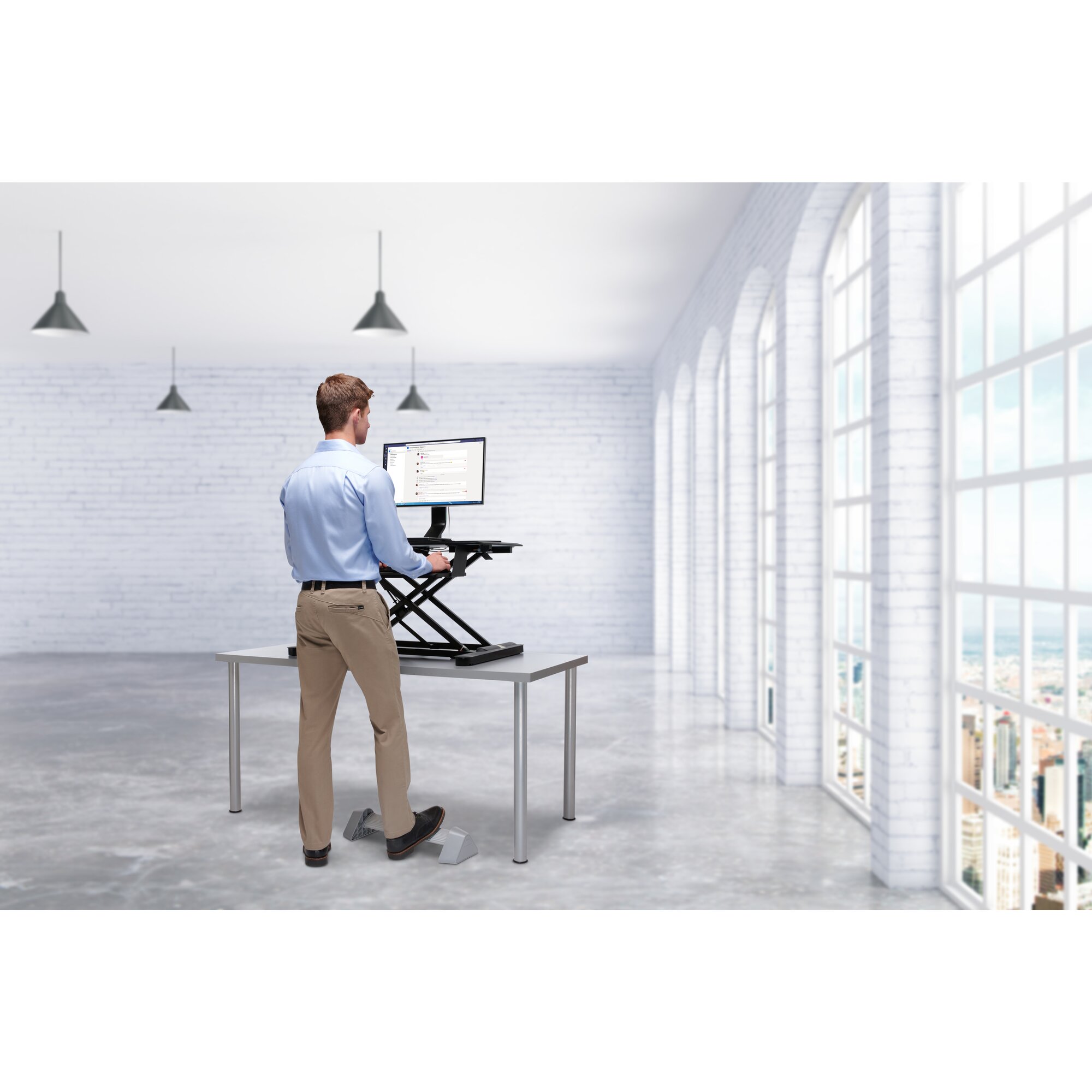 - Sleek, versatile design with a discreet, low profile fits any office environment. Ideal for sitting or standing.
