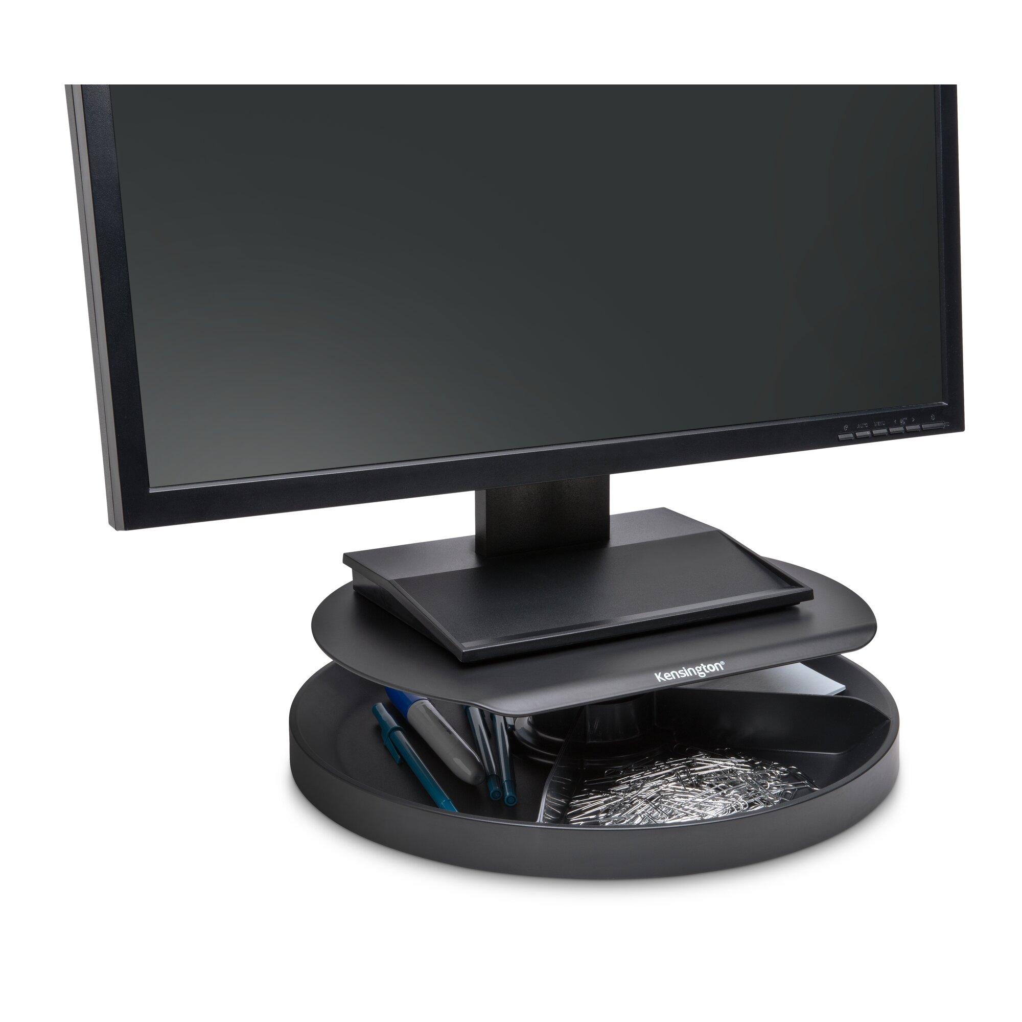 Patented 360° spinning carousel organises common desktop accessories