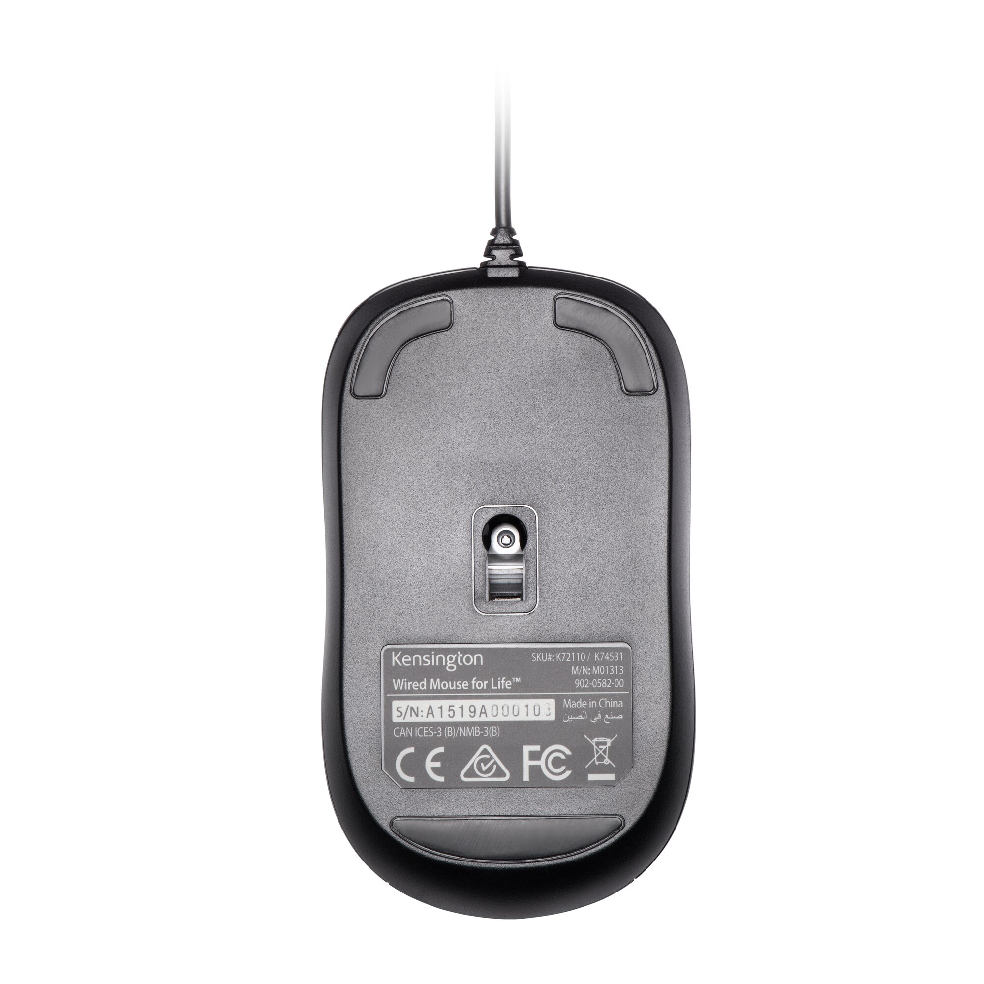 Kensington Wired ValuMouse. Form factor: Ambidextrous. Movement detection technology: Optical, Device interface: USB Type-A, Movement resolution: 1000 DPI, Buttons type: Pressed buttons, Buttons quantity: 3, Scroll type: Wheel. Power source: Cable. Product colour: Black