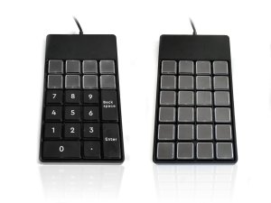 • Key layout can be changed using single and double keys (can be purchased separately). Number pad extra pre printed keytops are included (0-9, enter, + and .)
