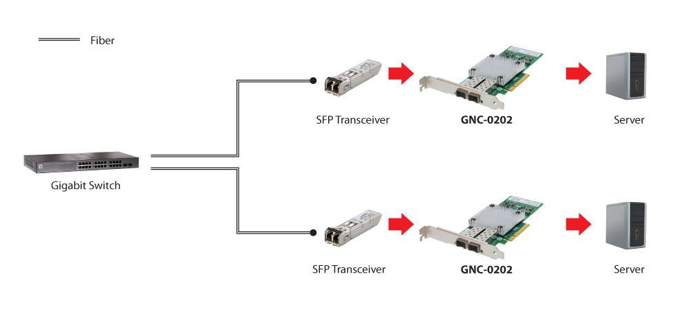 LevelOne 10 Gigabit Fiber PCIe Network Card, PCIe 8X, 2 x SFP. Internal. Connectivity technology: Wired, Host interface: PCI Express, Interface: Fiber. Product colour: Aluminium