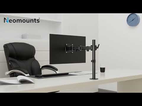 Neomounts NM-D135BLACK Monitor arm 10-27". Mounting: Clamp/Grommet, Maximum weight capacity: 8 kg, Minimum screen size: 25.4 cm (10"), Maximum screen size: 68.6 cm (27"), Minimum VESA mount: 75 x 75 mm, Maximum VESA mount: 100 x 100 mm. Height adjustment, Tilt angle range: 0 - 90°. Product colour: Black