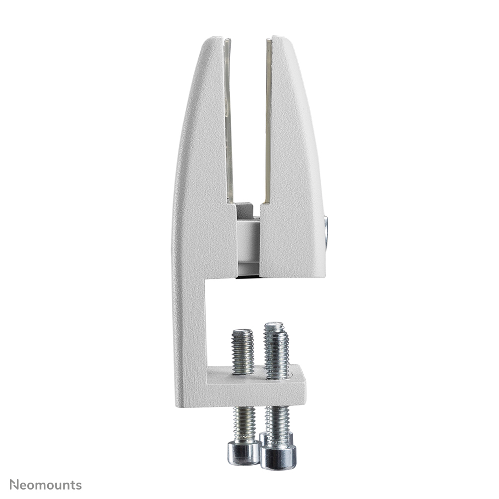 Neomounts NS-CLMP25WHITE Desk clamp set (2 pcs) - max 5 kg. Product colour: White, Housing material: Aluminium, Maximum weight capacity: 5 kg. Weight: 120 g, Width: 42 mm, Depth: 310 mm. Master (outer) case net weight: 24 kg, Master (outer) case width: 465 mm, Master (outer) case length: 250 mm