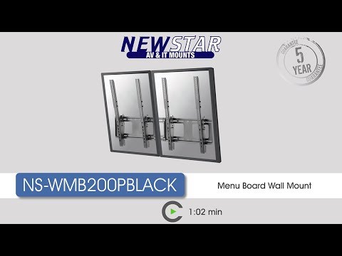 Neomounts NS-WMB200PBLACK Menuboard wall mount 40-52" - tiltable - portrait. Minimum screen size: 101.6 cm (40"), Maximum screen size: 132.1 cm (52"), Minimum VESA mount: 200 x 200 mm, Maximum VESA mount: 400 x 600 mm. Tilt angle range: 0 - 10°, Swivel angle: 6°. Product colour: Black