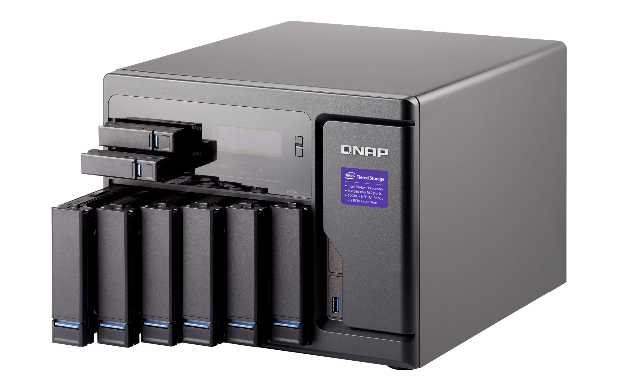 QNAP TVS-882. Type: NAS. Chassis type: Tower. Device class: Small & Medium Business. Processor family: Intel® Core™ i5, Processor model: i5-6500, Processor frequency: 3.2 GHz. Internal memory: 16 GB, Internal memory type: DDR4. Total installed storage capacity: 36 TB, Installed storage drive type: HDD. Operating system installed: QNAP Turbo System