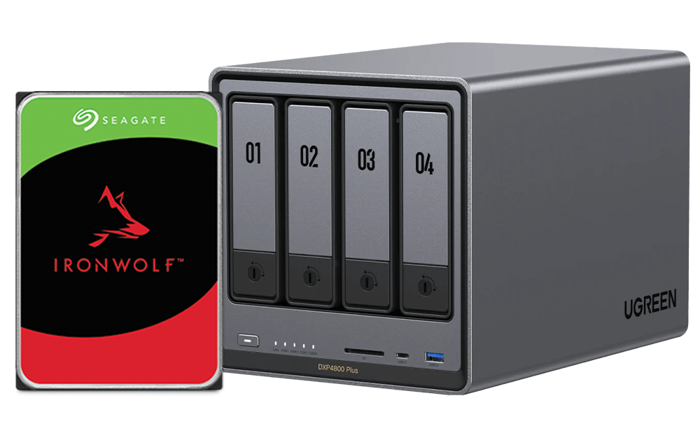 UGREEN NASync DXP4800 Plus 8TB (Seagate Ironwolf) 4-Bay Thunderbolt NAS with Intel Pentium Gold 5-Core CPU (Up to 4.40 GHz) 8GB DDR5 1x 2.5GbE 1x 10GbE 2x TBT4 SD Slot (Diskless)